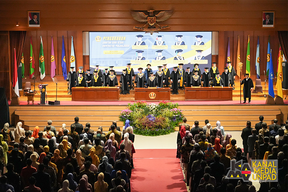 [Kanal Media Unpad] Universitas Padjadjaran mengukuhkan delapan Guru Besar baru, enam dari Fakultas Matematika dan Ilmu Pengetahuan Alam (FMIPA) dan dua dari Fakultas Perikanan dan Ilmu Kelautan (FPIK) dalam Pengukuhan Jabatan Guru Besar Unpad yang berlangsung di Graha Sanusi Hardjadinata Unpad Kampus Iwa Koesoemasoemantri, Jl. Dipati Ukur No. 35 Bandung pada Selasa, 22 Juli 2025. Pengukuhan yang diisi dengan paparan keilmuan dari masing-masing Guru Besar tersebut dibuka oleh Ketua Senat Akademik Unpad Prof. Ganjar Kurnia, dan dipimpin oleh Ketua Dewan Profesor Unpad, Prof. Arief Anshory Yusuf.