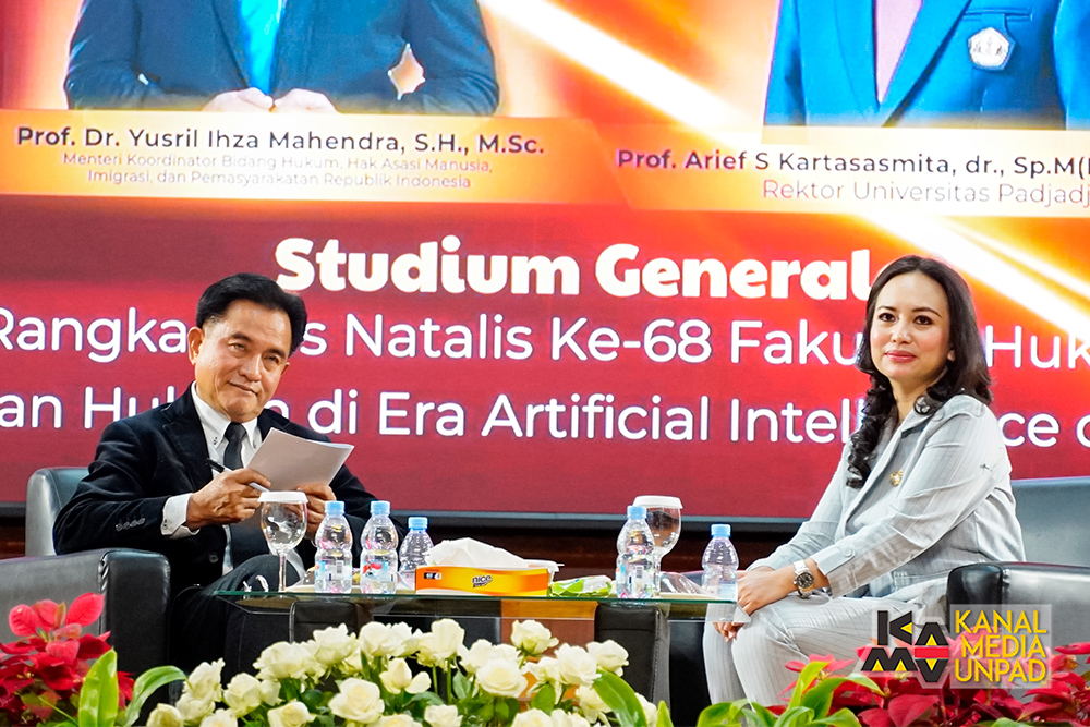 “Kontrol dan kendali manusia atas teknologi harus menjadi prinsip utama. Kita tidak boleh larut dalam determinisme teknologi yang menganggap perkembangan AI mustahil dikendalikan. Justru manusia, melalui lembaga sosial dan hukumnya, wajib memegang kendali agar arah perkembangan AI tetap selaras dengan kepentingan kemanusiaan,” ujar Menteri Koordinator Bidang Hukum, Hak Asasi Manusia, Imigrasi, dan Permasyarakatan Republik Indonesia, Prof. Dr. Yusril Ihza Mahendra, S.H., M.Sc., ketika memberikan kuliah umum dalam kegiatan Studium Generale Dies Natalis Ke-68 Fakultas Hukum Universitas Padjdjaran bertajuk “Tantangan Penegakan Hukum di Era Artificial Intelligence dan Transformasi Digital” di Graha Sanusi Hardjadinata Unpad, Jl. Dipati Ukur No 35 Bandung, Rabu 27 Agustus 2025.