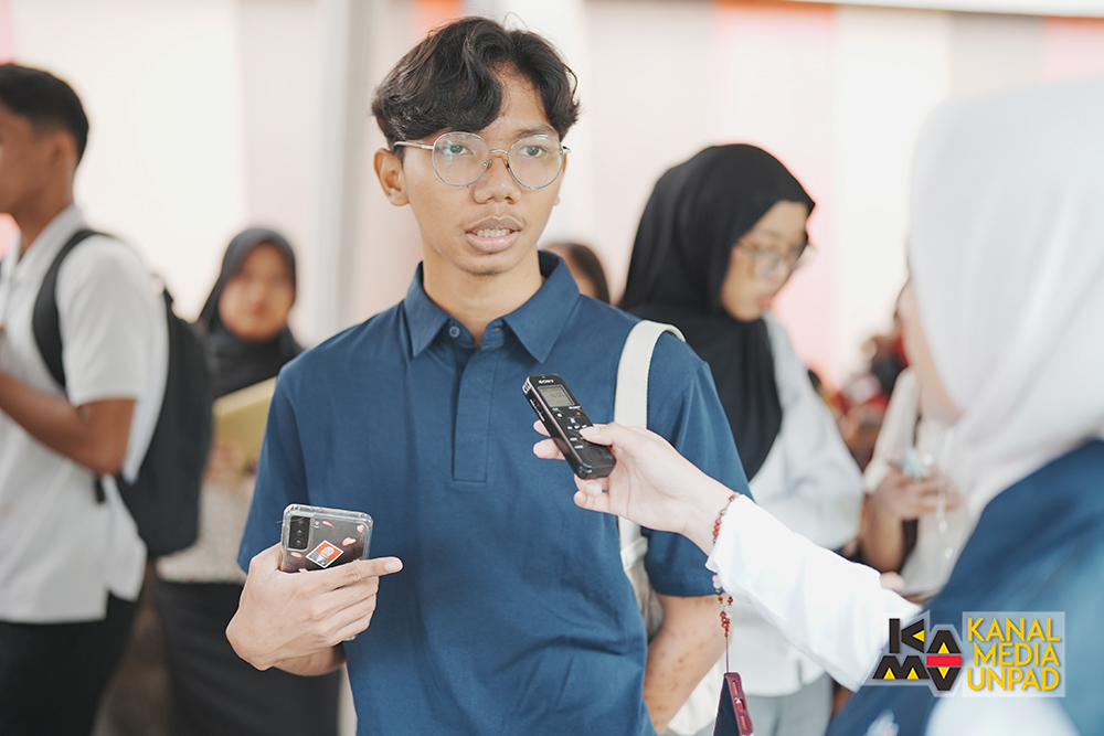 Salah satu mahasiswa baru yang yang ditemui saat penyelenggaraan PAMUKA 2025, Muhammad Gibran Rabbani (mahasiswa Program Studi Akuntansi Perpajakan Sekolah Vokasi Unpad) berharap bisa mengenal Unpad melalui acara ini. Gibran mengikuti seminar berjudul “Jati Diri Unpad” dan “Studi Mulus Bebas Jebakan Pinjol”. Menurut Gibran, kedua topik tersebut penting diikuti agar bisa lebih mengenal lingkungan kampus Unpad serta memahami risiko jebakan pinjaman online (pinjol) yang semakin marak di kalangan generasi muda.