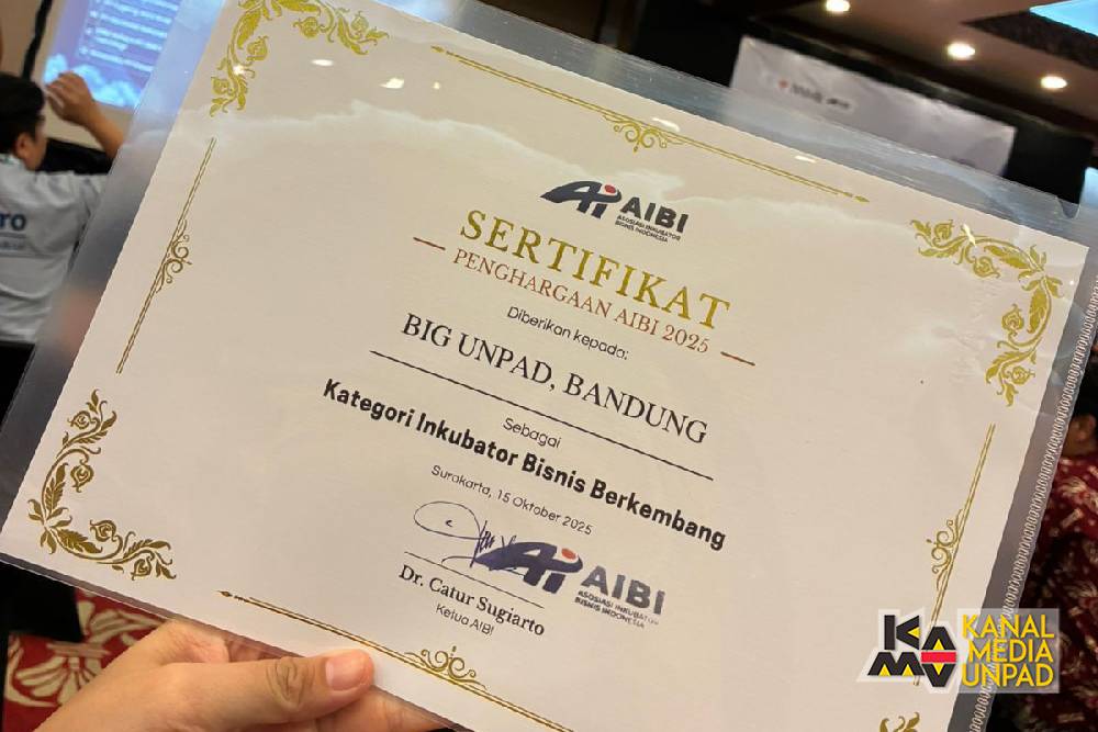 [Kanal Media Unpad] Unit Layanan Inkubasi Universitas Padjadjaran atau Business Incubation Generator (BIG) Unpad dianugerahi penghargaan sebagai Inkubator Bisnis Berkembang Tahun 2025 oleh Asosiasi Inkubator Bisnis Indonesia (AIBI) dalam acara seminar internasional Asian Association of Business Incubation Summit 2025 (AABI) di Solo pada 15 – 16 Oktober 2025.