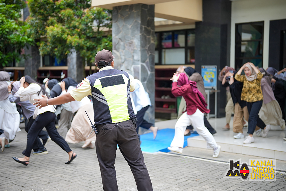 [Kanal Media Unpad] Universitas Padjadjaran terus memperkuat komitmennya terhadap keselamatan dan keberlanjutan lingkungan kampus melalui pelaksanaan Simulasi Tanggap Darurat Bencana di berbagai unit kerja dan gedung kampus. Kegiatan ini merupakan bagian dari implementasi Peraturan Rektor Universitas Padjadjaran Nomor 14 Tahun 2025 tentang Sistem Manajemen Keselamatan dan Kesehatan Kerja (SMK3L), yang mengamanatkan setiap satuan kerja di Unpad untuk memiliki kesiapan menghadapi potensi keadaan darurat, seperti kebakaran, gempa bumi, atau bencana lainnya.