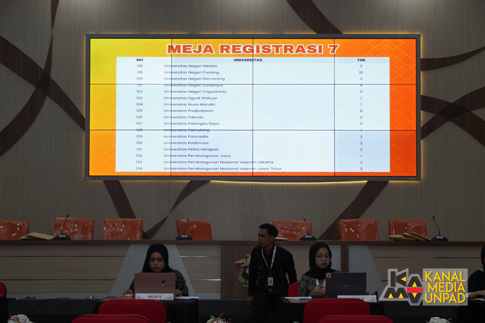 Staf Direktorat Kemahasiswaan Unpad, Siti Nurhayati, S.Sos., menyampaikan bahwa proses registrasi tim Unpad berjalan lancar sejak pagi. Tim Unpad tiba di lokasi sebelum pukul 08.00 WITA dan langsung mengikuti alur pendaftaran begitu layanan registrasi dibuka. Berkas yang diperlukan juga telah dipersiapkan sehingga proses verifikasi dapat dilakukan tanpa kendala.