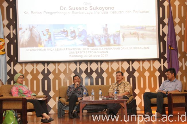 [Unpad.ac.id, 24/10/2013] When speaking at the national seminar on creativity, innovation, and competitiveness of the fisheries and marine science graduates organized by faculty of fisheries and marine science, the head of agency of human resource development marine affairs and fisheries Republic of Indonesia, Dr.Suseno Sukoyono, argued that in order to increase the level of fisheries and marine products, blue economy is deemed as the best sustainable strategy. What’s more, wastes can also be reduced.