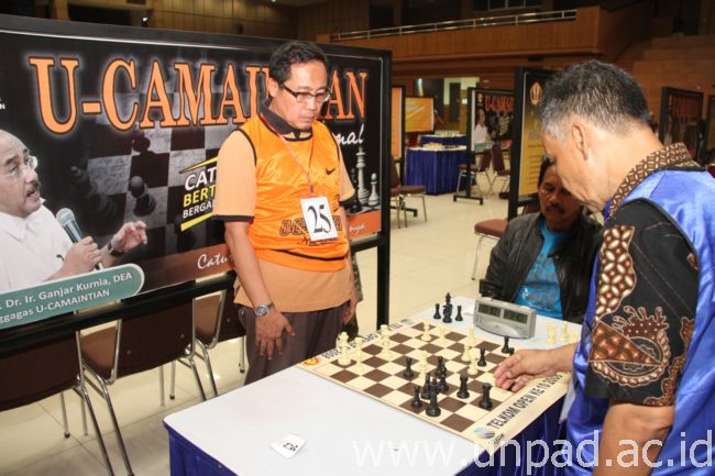 [Unpad.ac.id, 8/12/2013] Universitas Padjadjaran organized U-Camatian or there-player chess (also known as three-handed, three-man, or three-way chess, which has entered its third year, participated by 104 teams from various countries in Indonesia. U-Cmatian is a unique chess tournament initiated by Unpad rector, Prof. Ganjar Kurnia. He is targeting this annual event to be one of iconic events held by Universitas Padjadjaran Hopefully this event can be one of Unpad’s iconic event in the field of sport game.