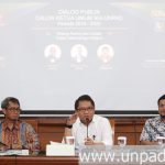 Each candidate presented their idea and vision in front of the panelists of Rector, Prof. Tri Hanggono Achmad, Vice Chairman of Ika Unpad 2012-2016 Drs. Eka Santosa, and Vice Chairman of BEM Kema Unpad Rinaldi M. Azka, as well as representatives of alumni with Islaminur Pempasa, the chief editor of Pikiran Rakyat, as moderator. Also attending the event were Chairman of Board of Trustees, Universitas Padjadjaran, the current Minister of Communications and Information, Rudiantara, MBA.