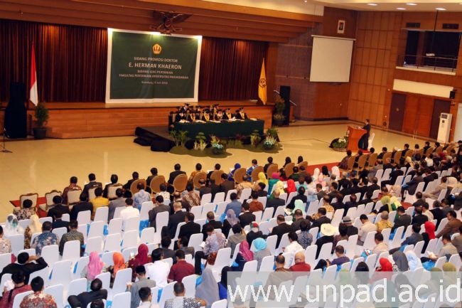 In the session, acting as promotor team were Prof. Dr. Ir. Hj. Yuyun Yuwariah AS., MS, Prof. Ir. H. Tuhpawana P. Sendjaja, Ph.D, and Dr. Ir. H. Sudarjat, MP, with Head of Session Prof. Tri Hanggono Achmad . Also attending the session is Ministry of Agriculture Andi Amran Sulaiman, Ministry of Maritime and Fisheries Susi Pudjiastuti, Head of the House of Represenatives Ade Komarudin, Vice Head of the House of Representatives Fadli Zon and Agus Hermanto, Head of Democrat Party Fraction DPR RI Edhie Baskoro Yudhoyono, and Karawang Regency Cellica Nurrachadiana.
