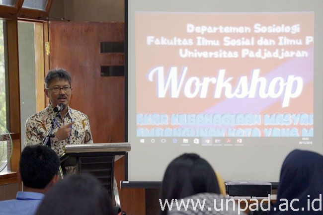 Vice Chancellor for Academic Affairs and Learning Unpad, Dr. Arry Bainus, M.A., said that the increase in the index value would need to be coupled with the implementation of cultural values. Such was said by Dr. Arry at a keynote speech at the Workshop “Measuring the Happiness Community in City Development Pluralistic Society” at the Graduate Campus of FISIP Universitas Padjadjaran, Bandung, Friday (9/12). This workshop was held by the Department of Sociology, Faculty of Social and Political Sciences, Universitas Padjadjaran.