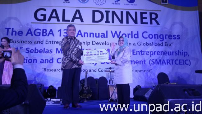 [Unpad.ac.id, 1/12/2016] Lecturer of Faculty Economics and Business Universitas Padjadjaran, Popy Rufaidah, SE., MBA., PhD., gained an international achievent at The Academy for Global Business Advancement (AGBA) the 13th Annual World Congress held in Solo, Central Java, Saturday (26/11). After competing with 400 papers from diverse topics and 31 countries, Popy won the Peruri Best Paper Award.