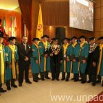 On the occasion, the Rector inaugurate 2,370 graduates consisting of graduates of Diploma-III Program, Diploma IV, Undergraduate Program, Specialist Education, Profession, Masters and Doctorate. In the first session of graduation ceremony, Minister of Youth and Sport of the Republic of Indonesia, Imam Nachrawi, also attended as a graduate of Master Program of Public Policy. In addition, graduates with disabilities from the Social Welfare Studies Program Usep Rohmat were appointed to the session.
