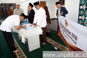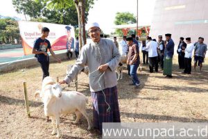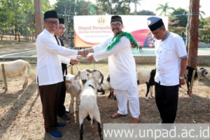 The handover of sacrificial animals is a form of Unpad’s concern to the people in the Jatinangor region through the program “Unpad Berkurban”. This year, as many as 84 sacrificial sheep were given by Unpad to 12 villages in Jatinangor. Every village gained 7 sheep.