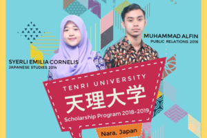 [unpad.ac.id, 3/9/2018] Two students of Unpad, Muhammad Alfin (Public Relations, Faculty of Communication Sciences) and Syerli Emilia Cornelis (Japanese Literature, Faculty of Cultural Sciences) were selected to join the student exchange scholarship program at Tenri University, Japan. This program will be held from September 2018 to August 2019.
