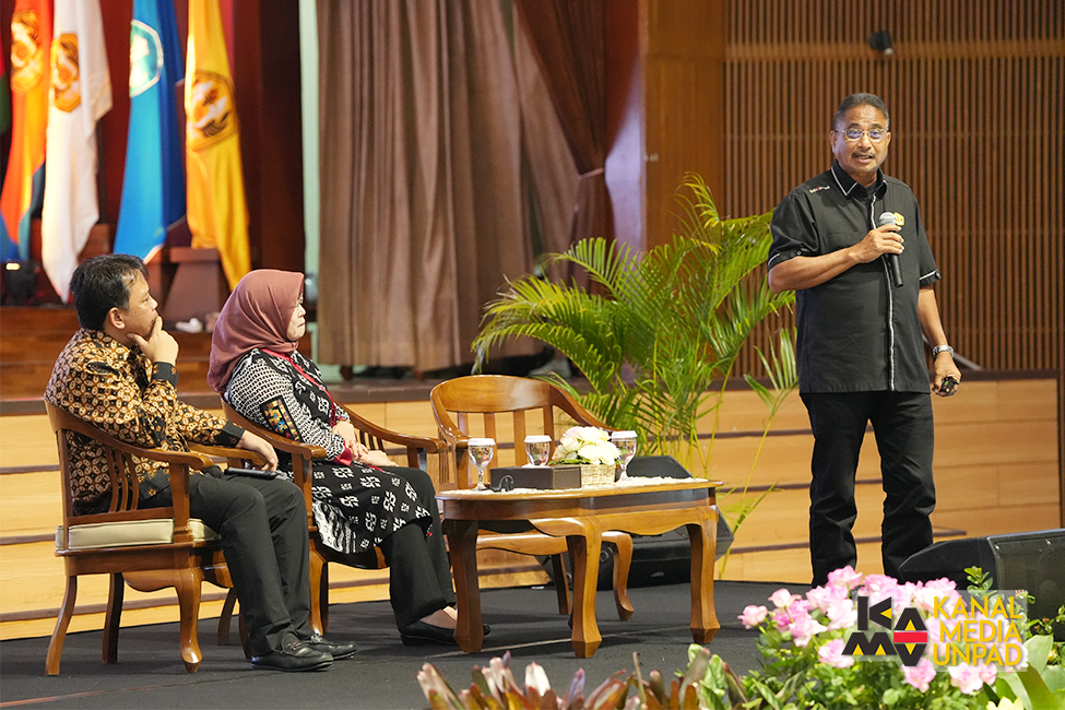 The Rector of Unpad, Prof. Rina Indiastuti, S.E., M. SIE., and the Chairperson of the Board of Trustees, Dr. Ir. Arief Yahya. M. Sc. attend the gathering event as a speaker, and the Chairperson of the Board of Professors, Prof. Arief Anshory Yusuf, as a moderator.
