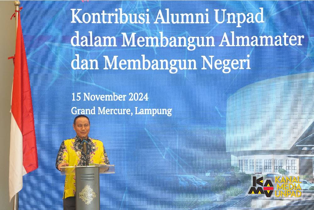 The Rector delivered this message during the “Universitas Padjadjaran Greets Alumni in Lampung” event held at Grand Mercure Lampung on Friday, November 15th, 2024. The event, supported by the Unpad Alumni Association of Lampung, was attended by notable figures, including the Chairman of the Provincial Legislative Council of Lampung, Ahmad Giri Akbar, SE., MBA., the Expert Staff to the Governor of Lampung in Economic, Finance, and Development Affairs, Ir. Zainal Abidin, MT., the Chairperson of the Unpad Alumni Association of Lampung, Prof. Dr. dr. Asep Sukohar, S.Ked., M.Kes., along with Unpad’s executive boards and alumni based in Lampung.