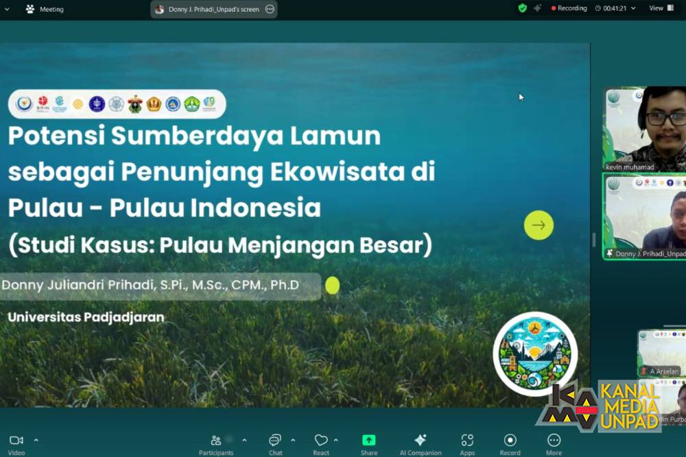 [Unpad Media Channel] The Graduate School and the Center for Tourism Studies at Universitas Padjadjaran, in collaboration with the Cakrawala Indonesia Conservation Foundation, organized the 3rd Seagrass Voice discussion webinar, #NgeLamunSore-Sore, on Friday, February 28th, 2025. The webinar focused on the role of seagrass in supporting ecotourism and environmental sustainability in coastal areas.