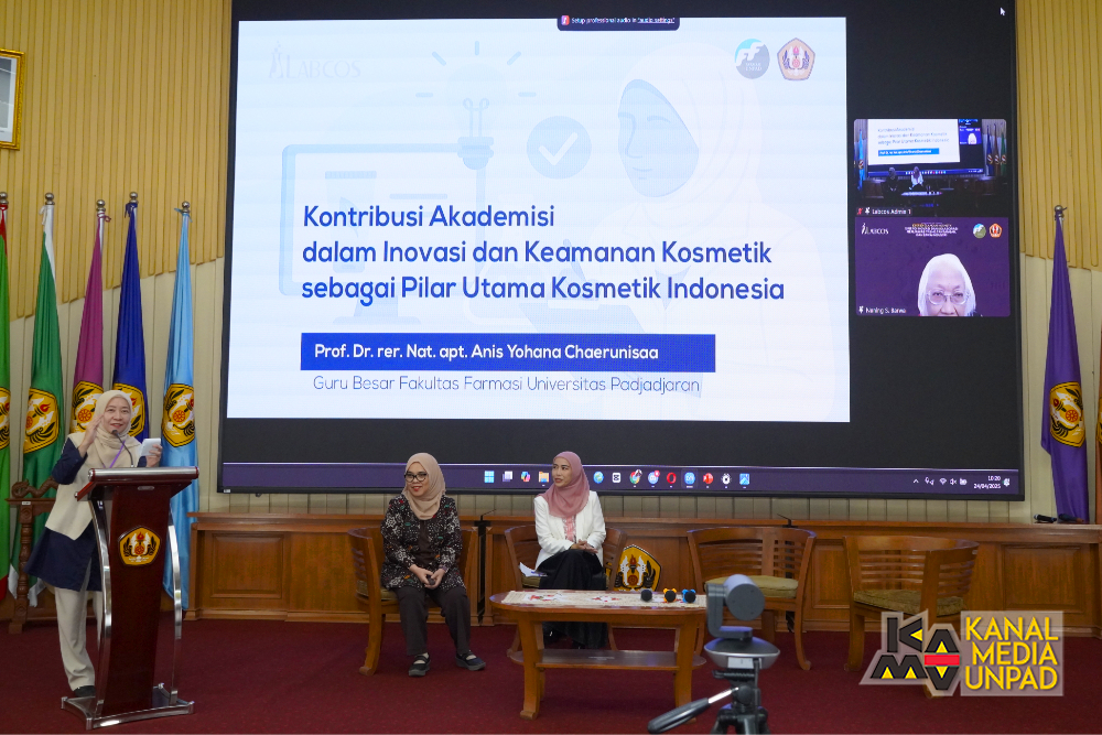 Kashuri delivers these remarks as a keynote speaker at a seminar and webinar series titled “Behind the Glamour of Cosmetics: Synergy in Innovation and Collaboration to Address Trends, Challenges, and Ethics in the Industry.” The event was organized by the Faculty of Pharmacy at Universitas Padjadjaran (Unpad) in collaboration with the Cosmetic Laboratory (Labcos), and is held at Bale Sawala, Unpad Rectorate Building, on Thursday, April 24th, 2025.