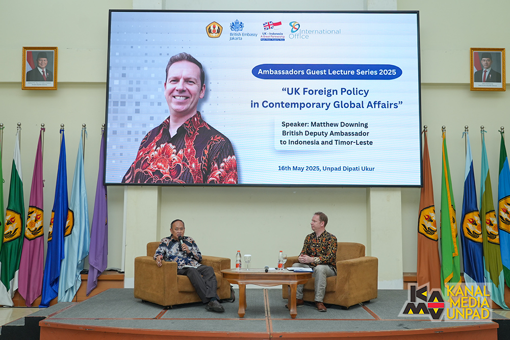 [Unpad Media Channel] The International Affairs Office at Universitas Padjadjaran, in collaboration with the British Embassy Jakarta, hosts the 2025 Ambassadors Guest Lecture Series under the theme “UK Foreign Policy in Contemporary Global Affairs”. The event takes place in the Multi-purpose Room, Building 2, 4th Floor, Universitas Padjadjaran campus, Bandung, on Friday, May 16th, 2025. The lecture featured representatives from the British Embassy, who discusses the role and direction of the United Kingdom’s foreign policy amid today’s dynamic geopolitical landscape
