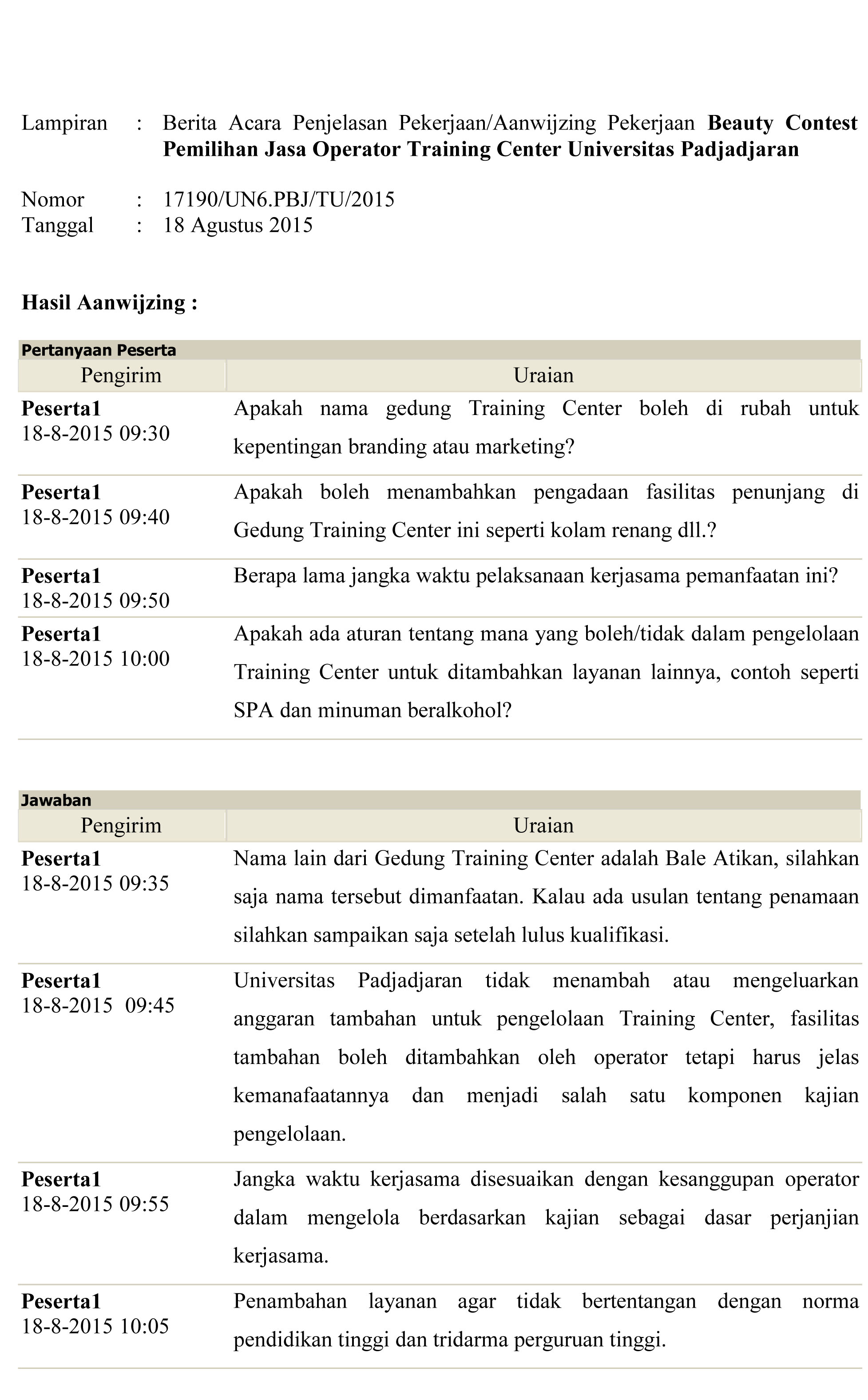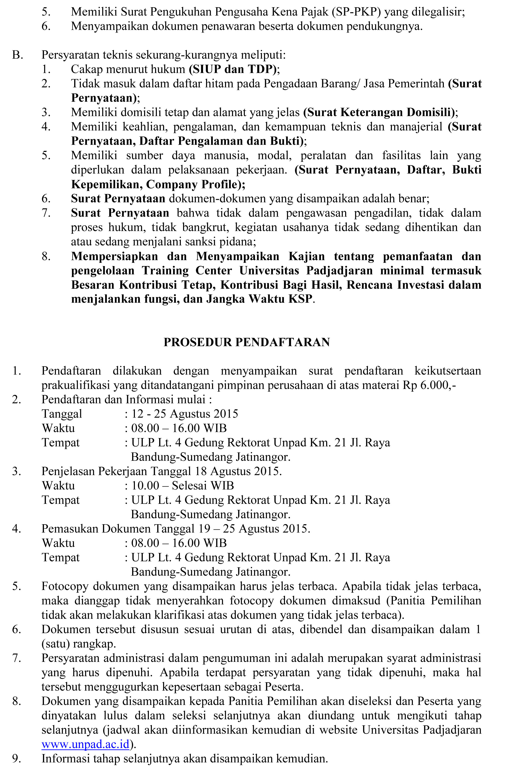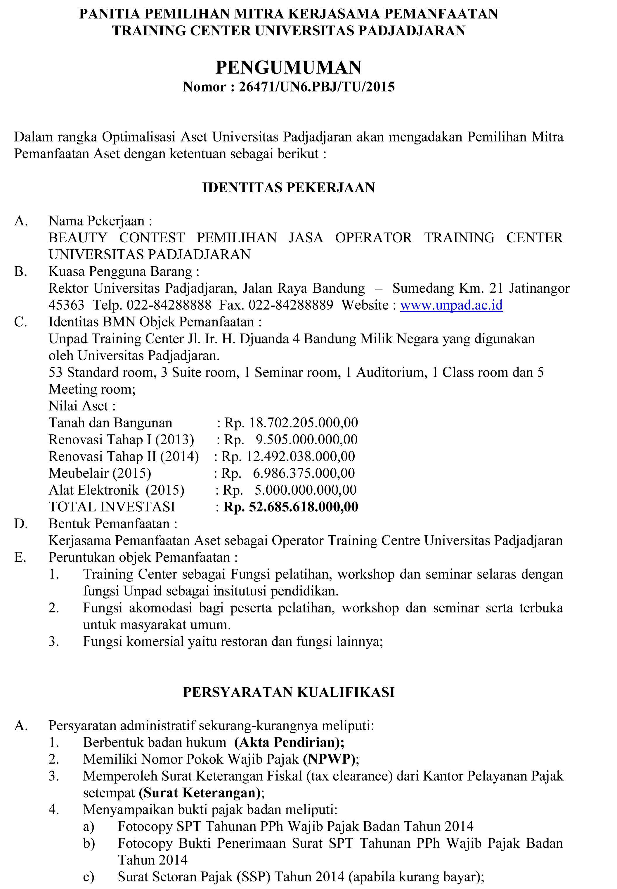 Pengumuman Beauty Contest Pemilihan Jasa Operator Training Center Unpad Jl. Ir. H. Djuanda 4 Bandung Kantor Komunikasi Publik 2015-08-21 1 min read 2015-08-21 Share this: Baca 1 menit 1183 views Share this: