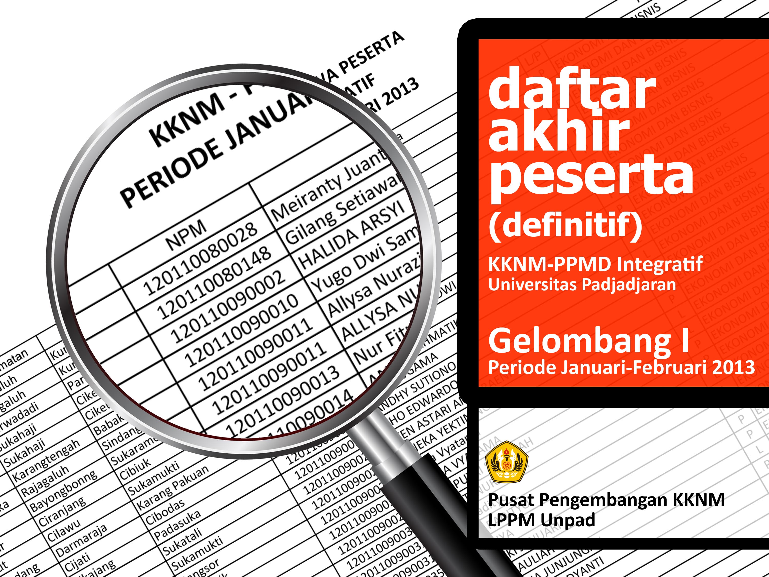 Pengumuman Daftar Akhir Peserta (Definitif) KKNM-PPMD Integratif Unpad Gelombang I Periode Januari-Februari 2013 marlia 2012-10-09 1 min read 2012-10-09 Share this: Baca 1 menit Daftar Akhir Peserta (Definitif) KKNM-PPMD Integratif Unpad Gelombang I Periode Januari-Februari 2013 1981 views Share this:
