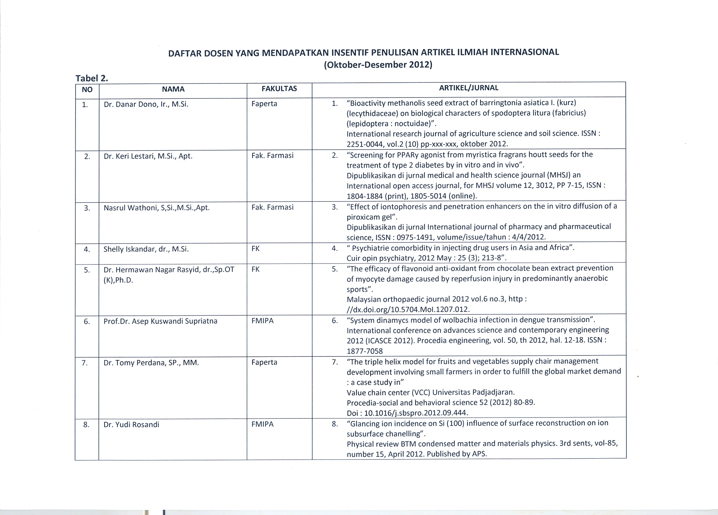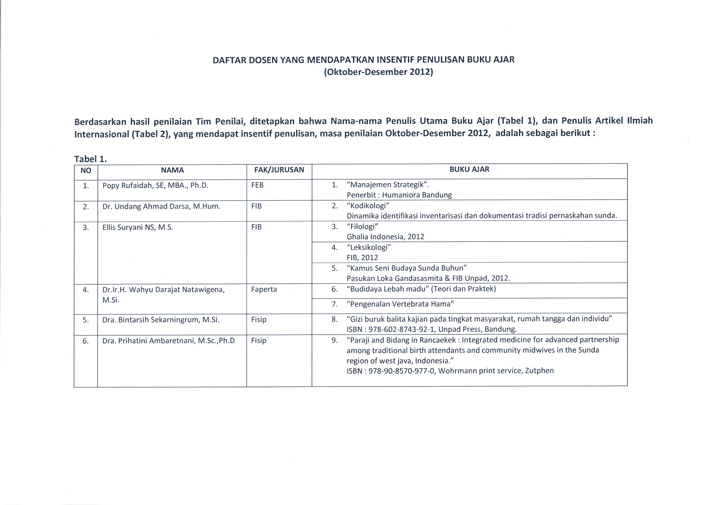 Pengumuman Daftar Dosen yang Mendapatkan Insentif Penulisan Buku Ajar dan Artikel Ilmiah Internasional (Oktober-Desember 2012) Kantor Komunikasi Publik 2012-12-05 1 min read 2012-12-05 Share this: Baca 1 menit 636 views Share this: