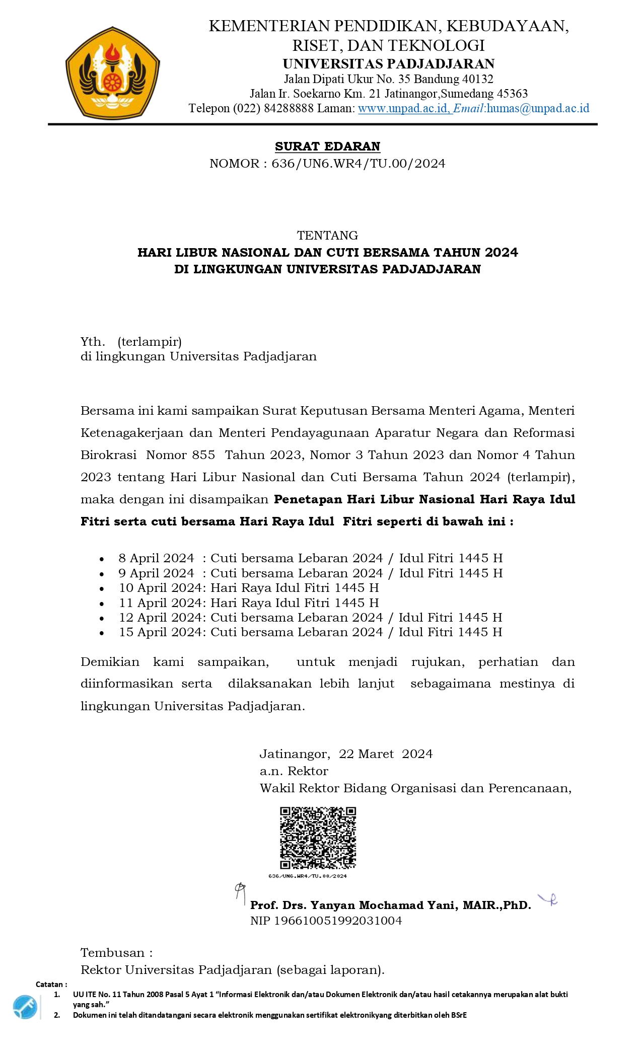 Pengumuman Edaran Hari Libur Nasional dan Cuti Bersama Idulfitri 1445 H Kantor Komunikasi Publik 2024-04-01 1 min read 2024-04-01 Share this: Baca 1 menit 8775 views Share this: