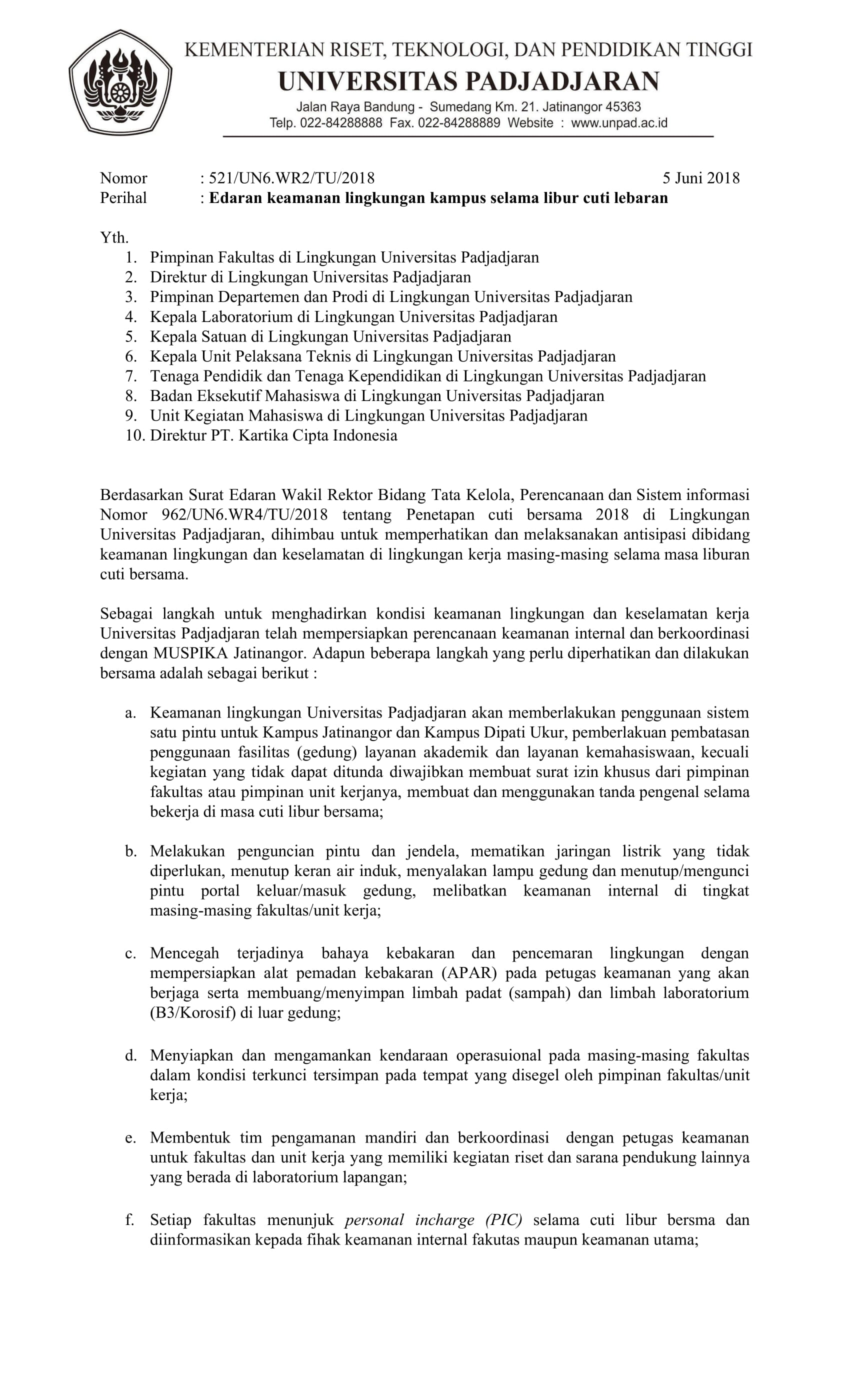 Pengumuman Edaran Keamanan Lingkungan Kampus Selama Libur Cuti Lebaran Kantor Komunikasi Publik 2018-06-05 1 min read 2018-06-05 Share this: Baca 1 menit 715 views Share this: