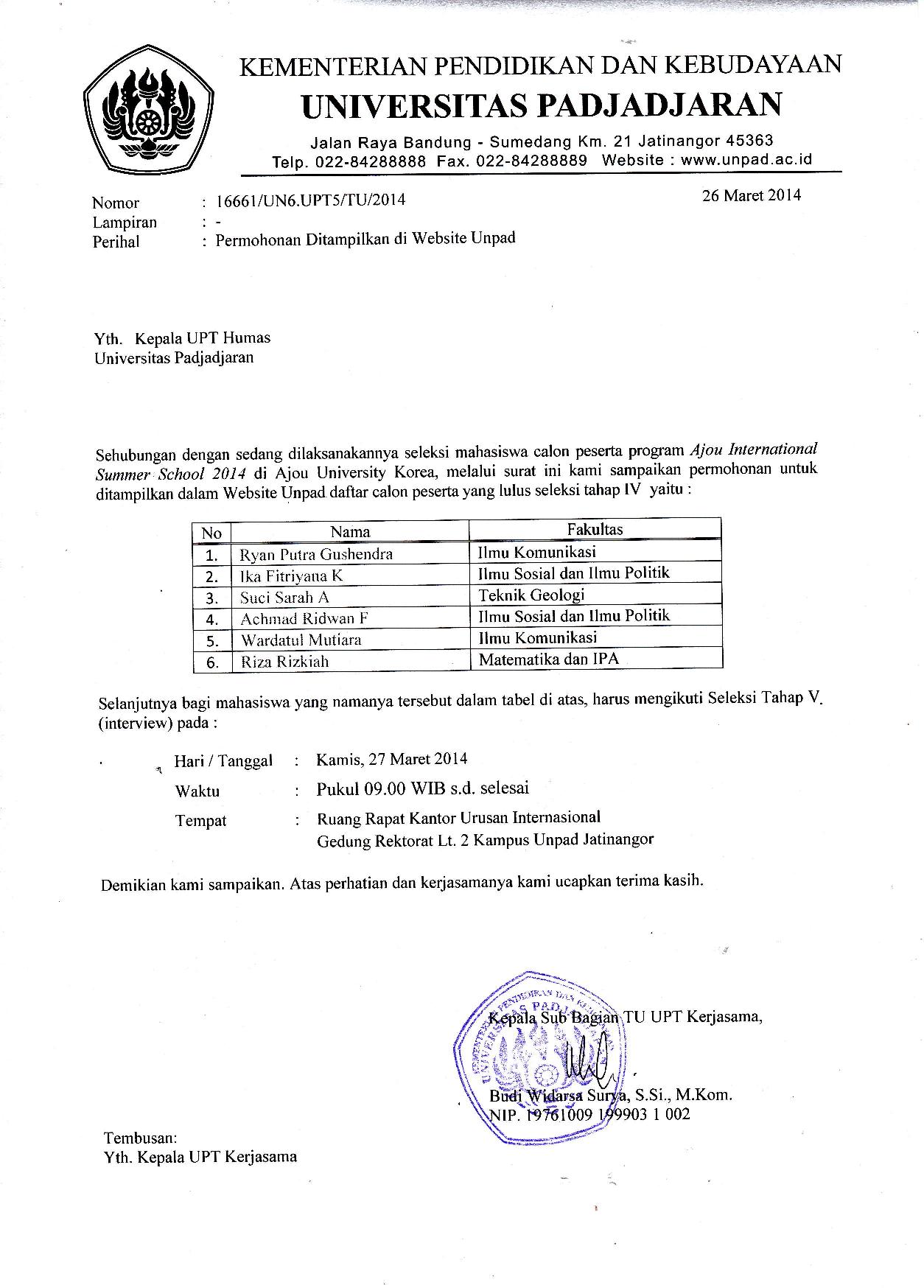 Pengumuman Hasil Seleksi Tahap 4 Ajou International Summer School 2014 Kantor Komunikasi Publik 2014-03-27 1 min read 2014-03-27 Share this: Baca 1 menit 219 views Share this: