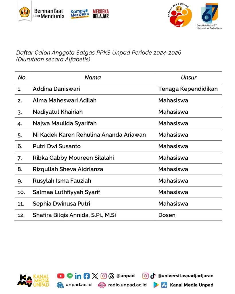 Penanganan Kekerasan Seksual (Satgas PPKS) Universitas Padjadjaran hasil seleksi melalui