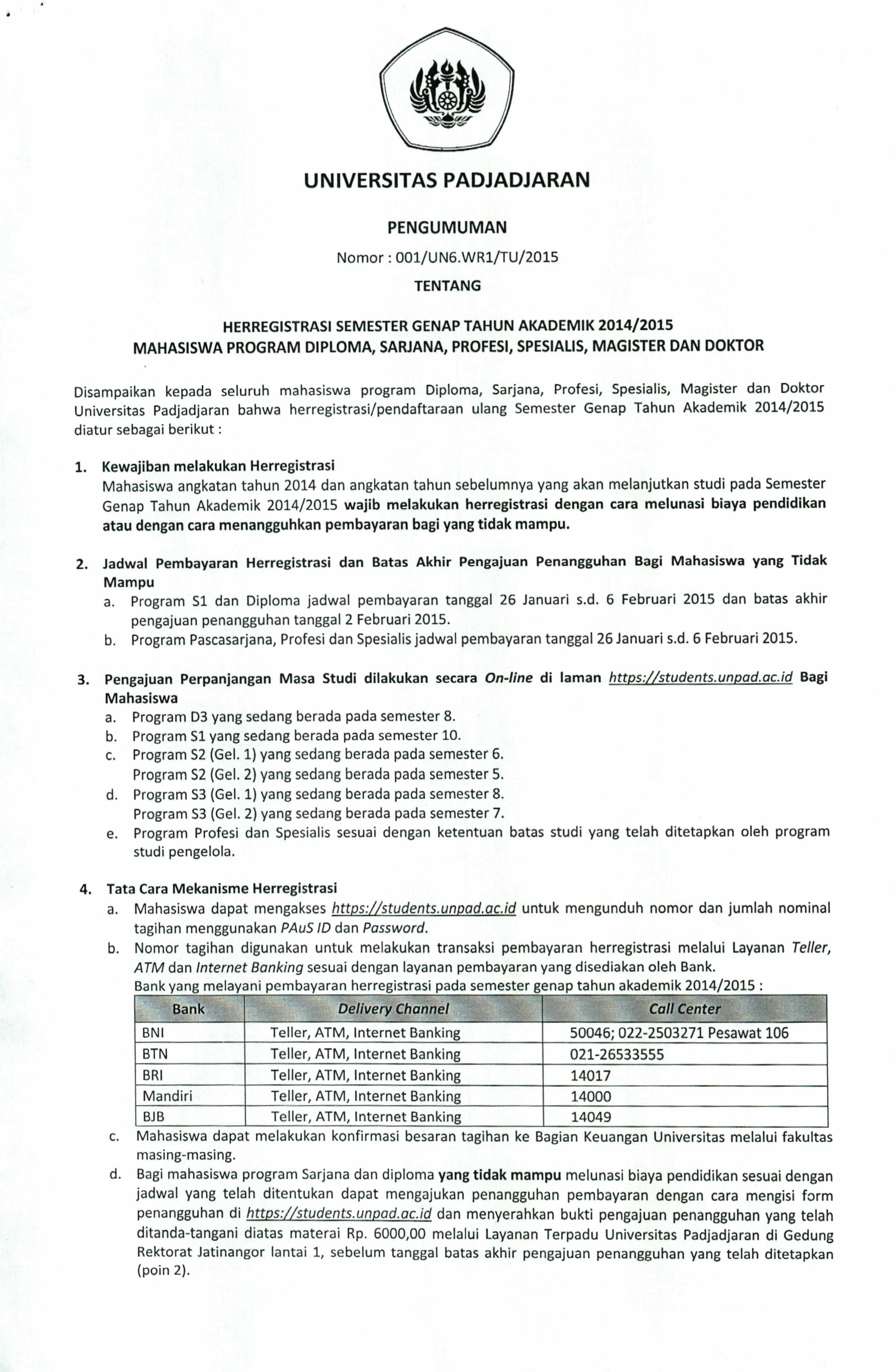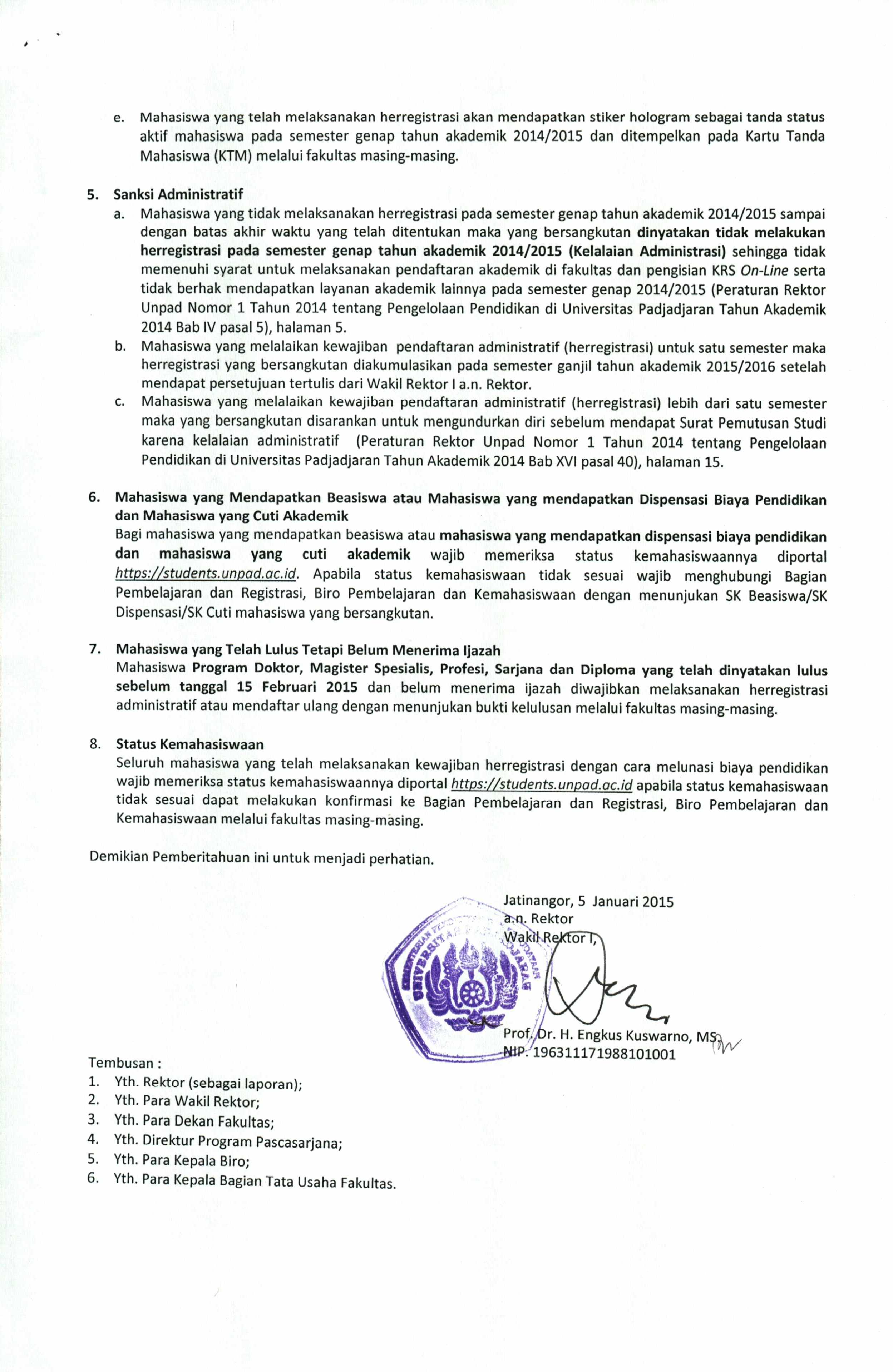 Pengumuman Herregistrasi Semester Genap TA 2014/2015 Unpad Kantor Komunikasi Publik 2015-01-08 1 min read 2015-01-08 Share this: Baca 1 menit 631 views Share this: