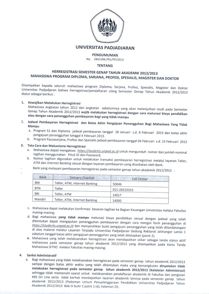 Pengumuman Herregistrasi Semester Genap Tahun Akademik 2012/2013 Mahasiswa Program Diploma, Sarjana, Profesi, Spesialis, Magister dan Doktor marlia 2013-01-11 1 min read 2013-01-11 Share this: Baca 1 menit 554 views Share this: