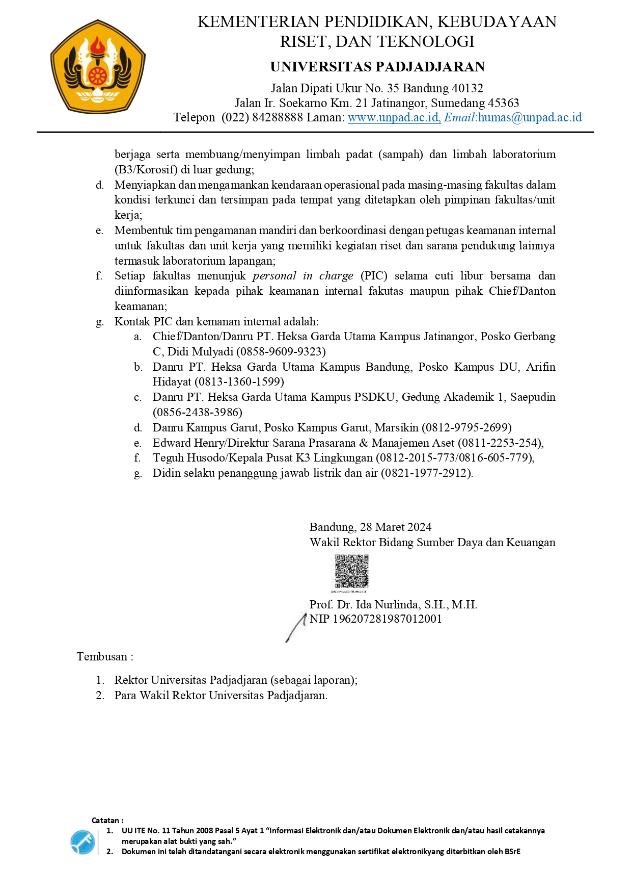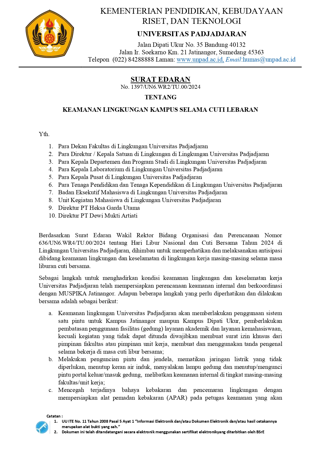 Pengumuman Imbauan Peningkatan Keamanan Lingkungan Kampus Selama Cuti Bersama Idulfitri 1445 H Kantor Komunikasi Publik 2024-04-01 1 min read 2024-04-01 Share this: Baca 1 menit 7704 views Share this: