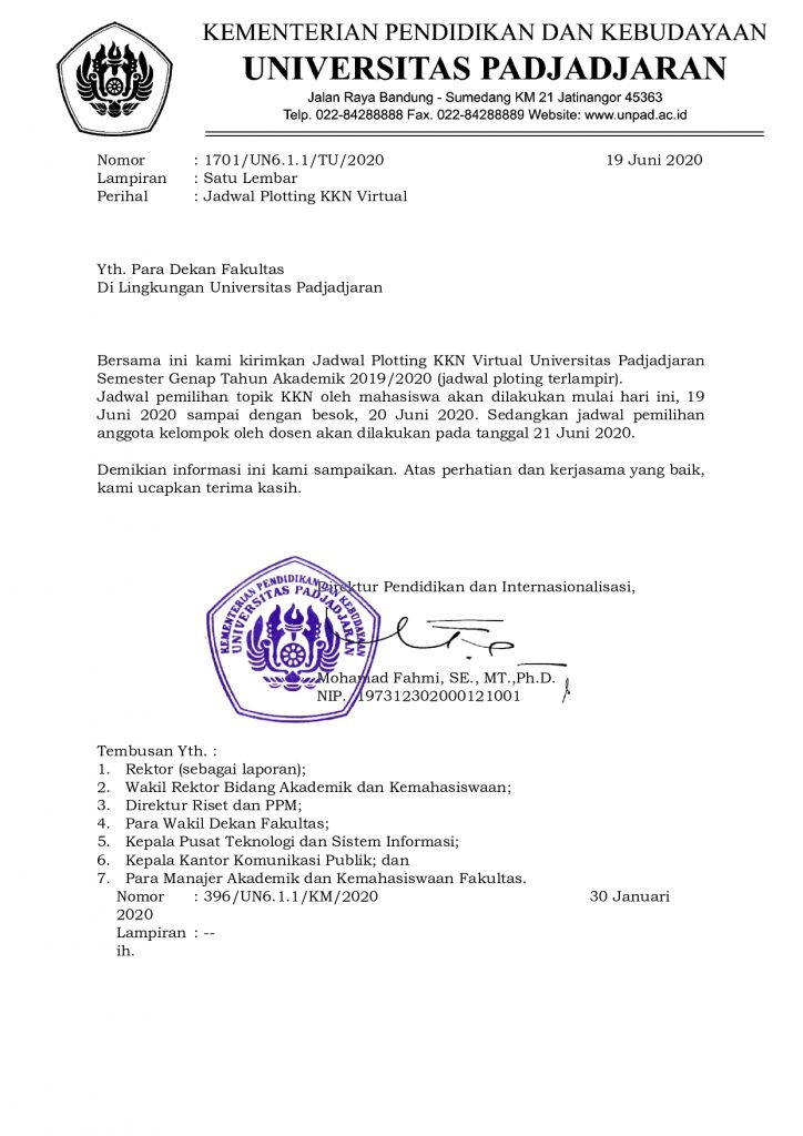 Pengumuman Jadwal Ploting KKN Virtual Unpad Kantor Komunikasi Publik 2020-06-19 1 min read 2020-06-19 Share this: Baca 1 menit 937 views Share this: