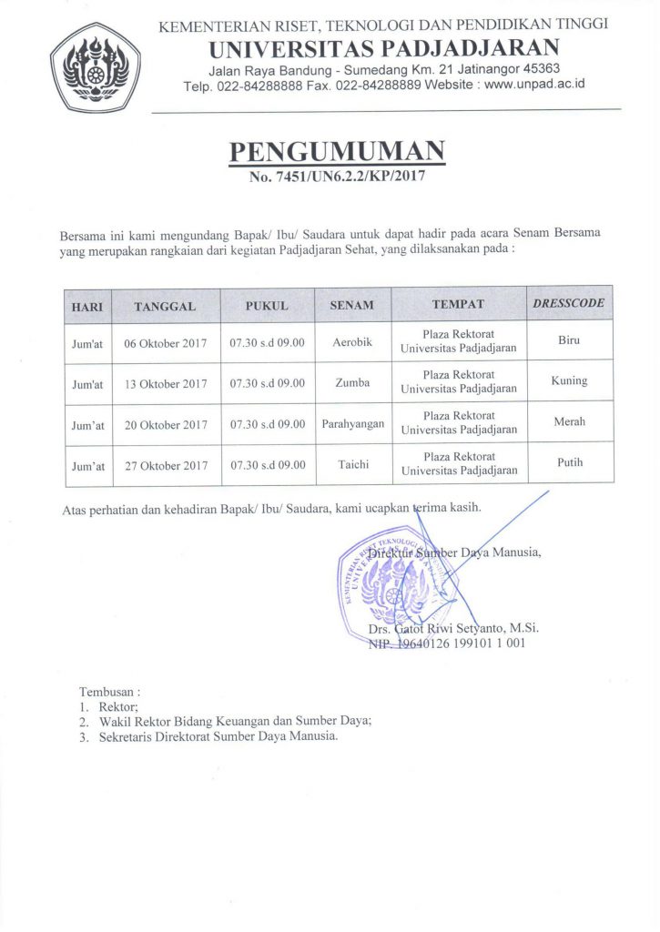 Pengumuman Jadwal Senam Bersama Bulan Oktober 2017 Kantor Komunikasi Publik 2017-10-03 1 min read 2017-10-03 Share this: Baca 1 menit 266 views Share this: