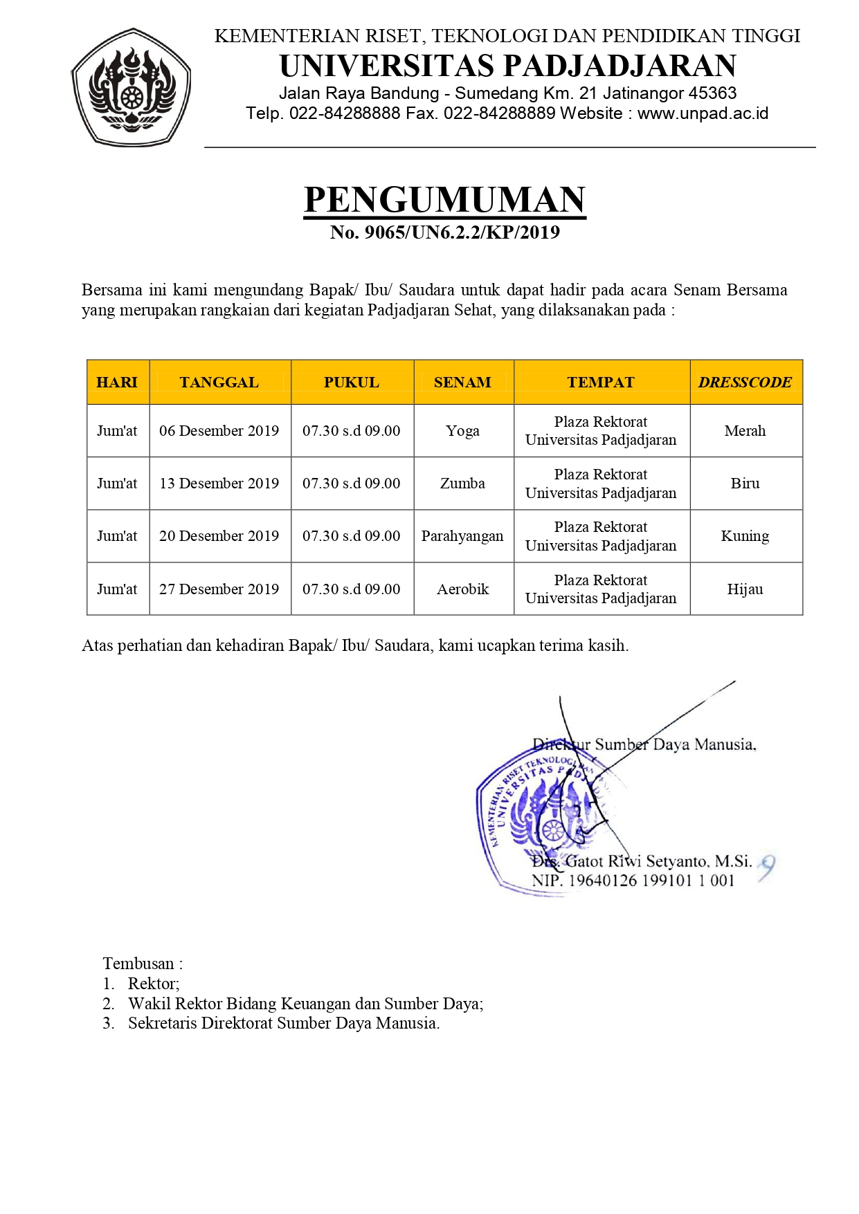 Pengumuman Jadwal Senam Bersama Padjadjaran Sehat Bulan Desember 2019 Kantor Komunikasi Publik 2019-12-03 1 min read 2019-12-03 Share this: Baca 1 menit 380 views Share this: