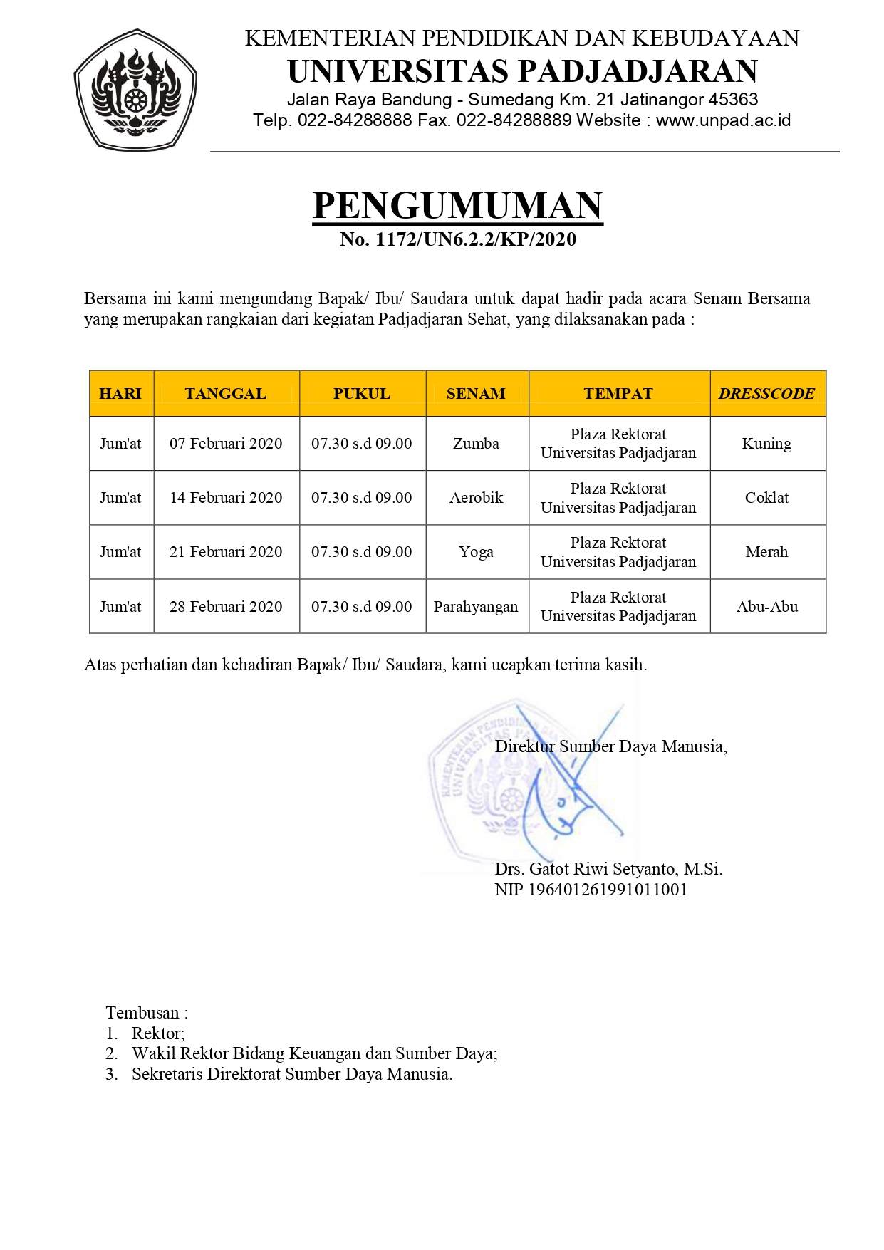 Pengumuman Jadwal Senam Bersama Padjadjaran Sehat Bulan Februari 2020 Kantor Komunikasi Publik 2020-02-06 1 min read 2020-02-06 Share this: Baca 1 menit 455 views Share this: