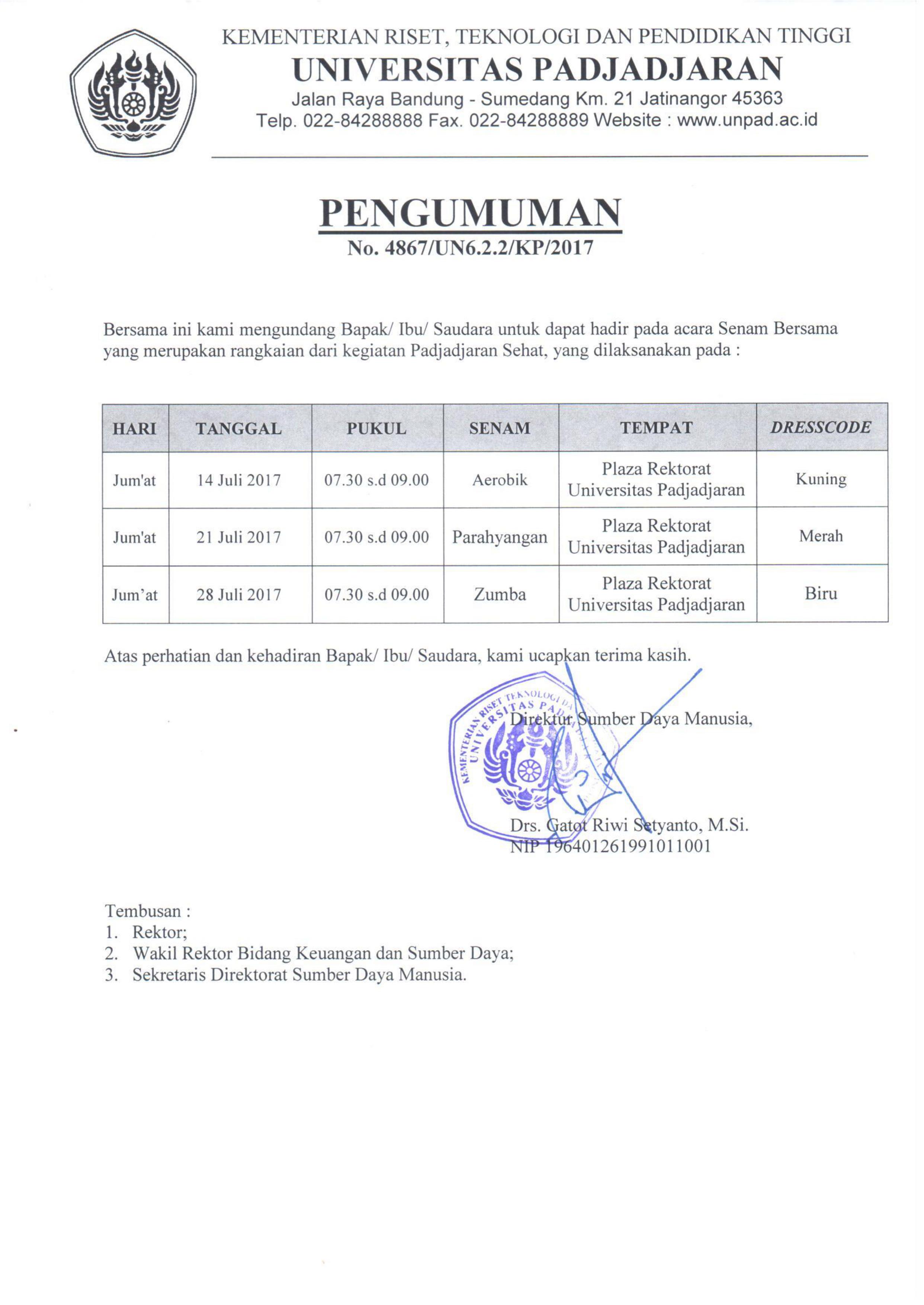 Pengumuman Jadwal Senam Bersama Padjadjaran Sehat Bulan Juli 2017 Kantor Komunikasi Publik 2017-07-10 1 min read 2017-07-10 Share this: Baca 1 menit 212 views Share this: