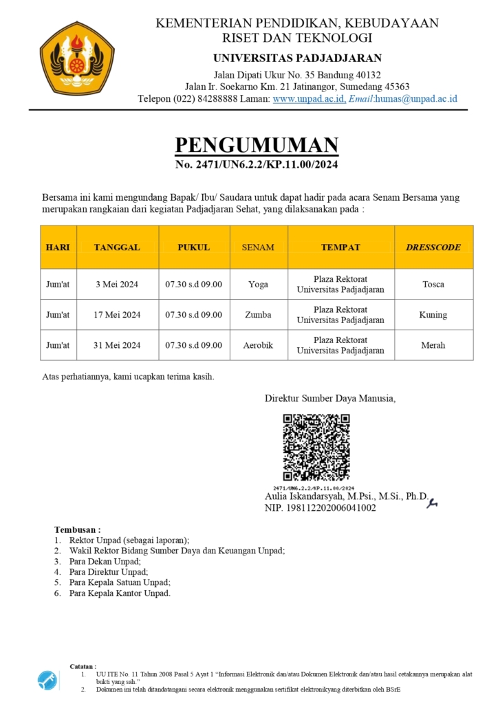 Pengumuman Jadwal Senam Bersama Padjadjaran Sehat Bulan Mei 2024 Kantor Komunikasi Publik 2024-05-13 1 min read 2024-05-13 Share this: Baca 1 menit 7227 views Share this: