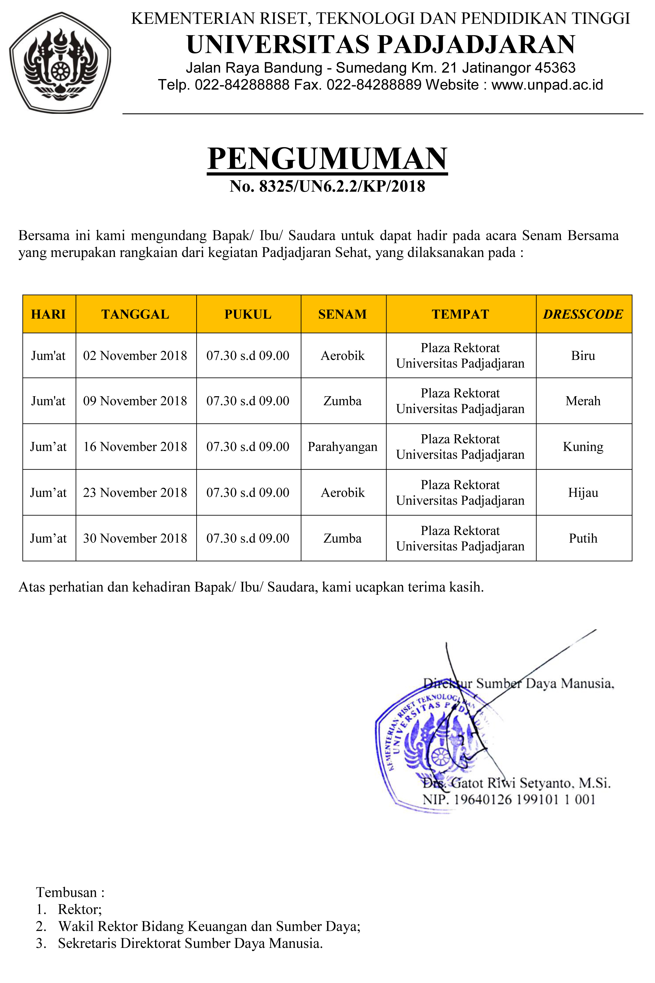 Pengumuman Jadwal Senam Bersama Padjadjaran Sehat Bulan November 2018 Kantor Komunikasi Publik 2018-10-31 1 min read 2018-10-31 Share this: Baca 1 menit 355 views Share this: