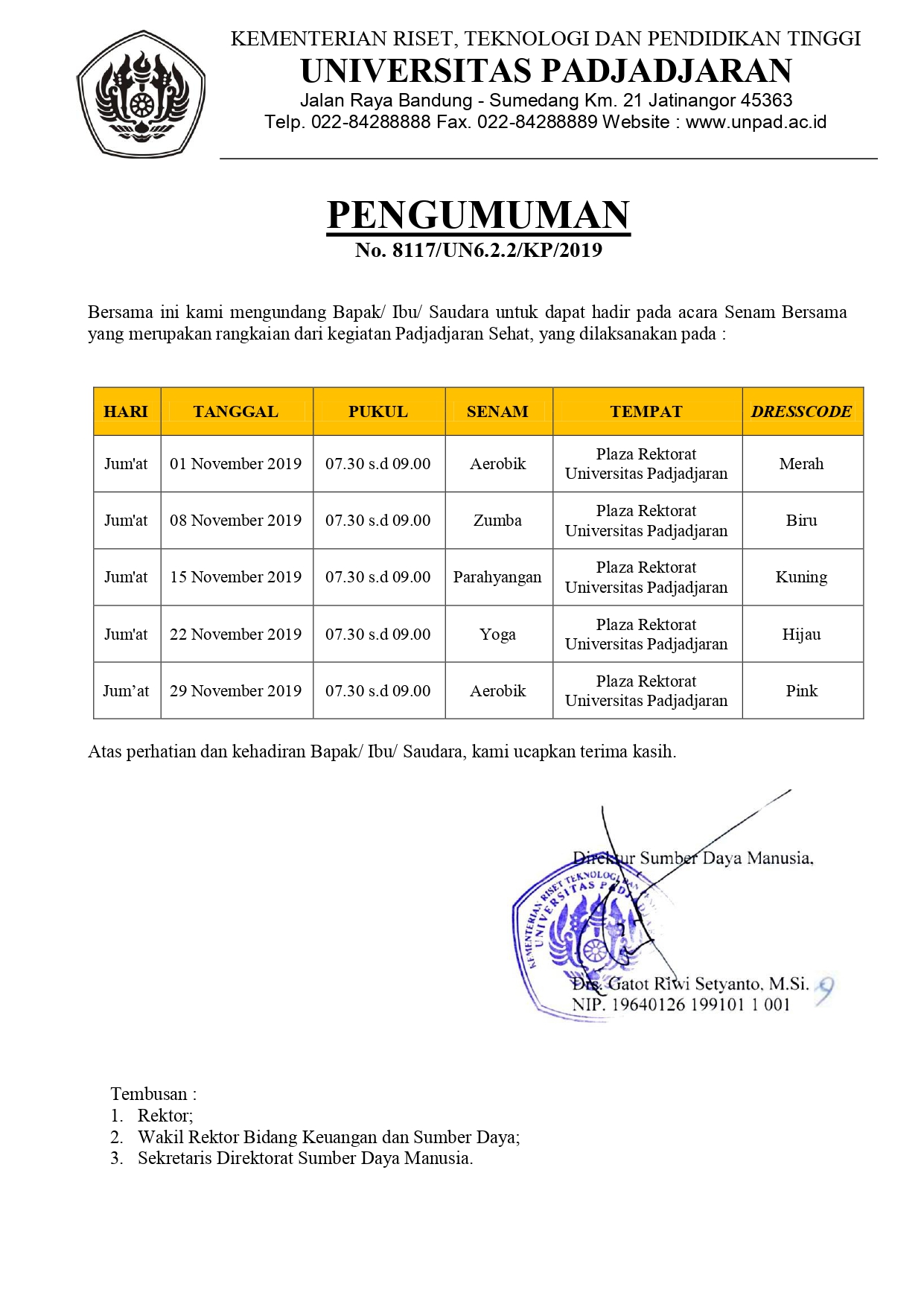 Pengumuman Jadwal Senam Bersama Padjadjaran Sehat Bulan November 2019 Kantor Komunikasi Publik 2019-10-31 1 min read 2019-10-31 Share this: Baca 1 menit 386 views Share this: