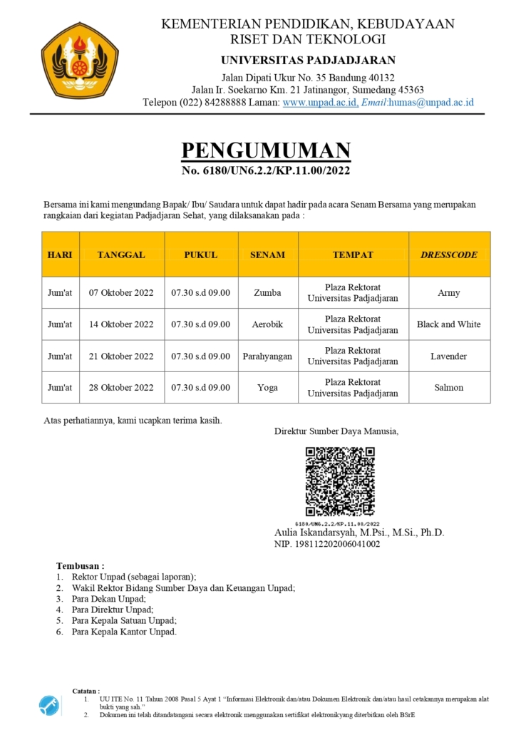 Pengumuman Jadwal Senam Bersama Padjadjaran Sehat Bulan Oktober 2022 Kantor Komunikasi Publik 2022-10-06 1 min read 2022-10-06 Share this: Baca 1 menit 932 views Share this: