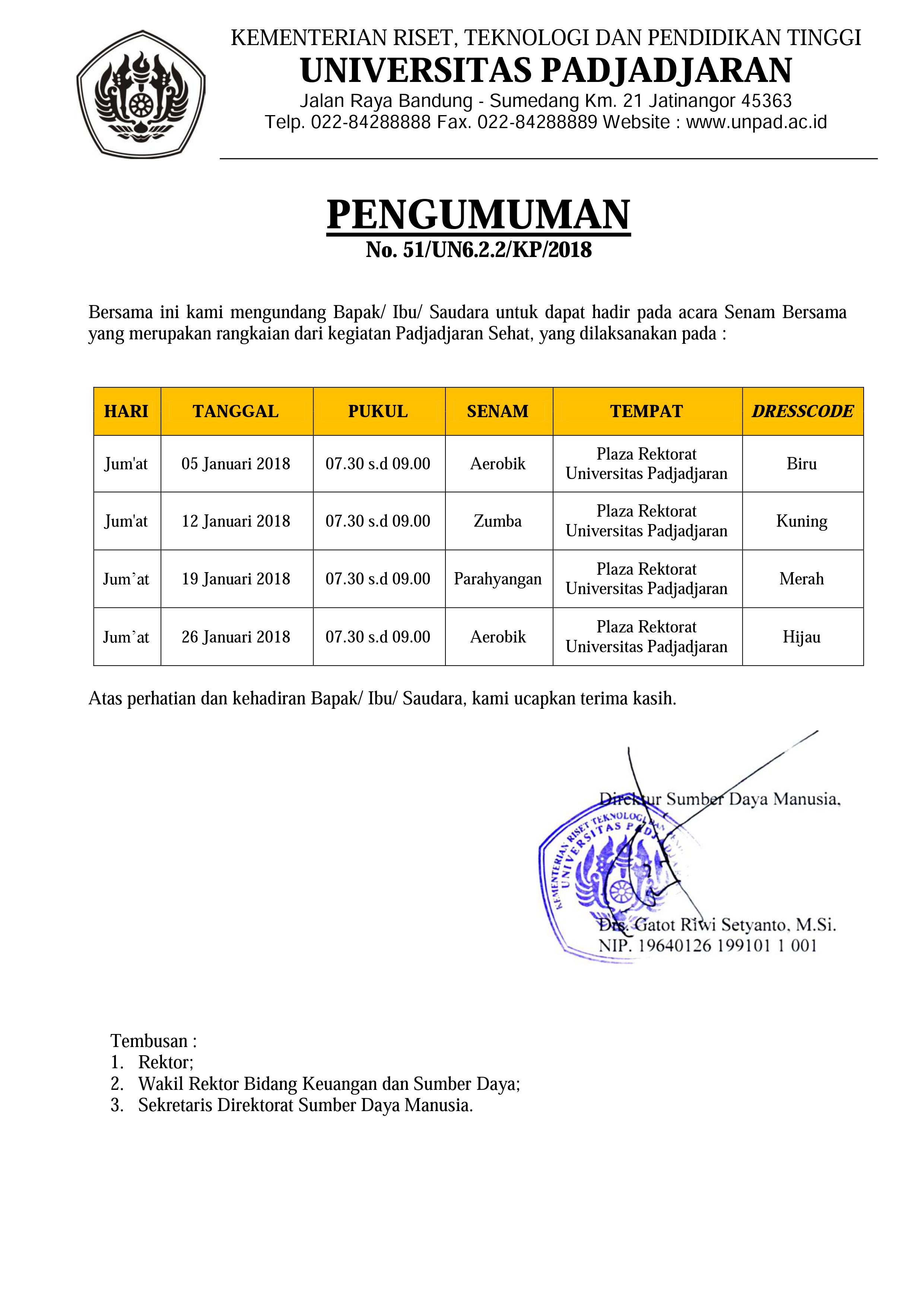 Pengumuman Jadwal Senam Bulan Januari 2018 Kantor Komunikasi Publik 2018-01-04 1 min read 2018-01-04 Share this: Baca 1 menit 401 views Share this: