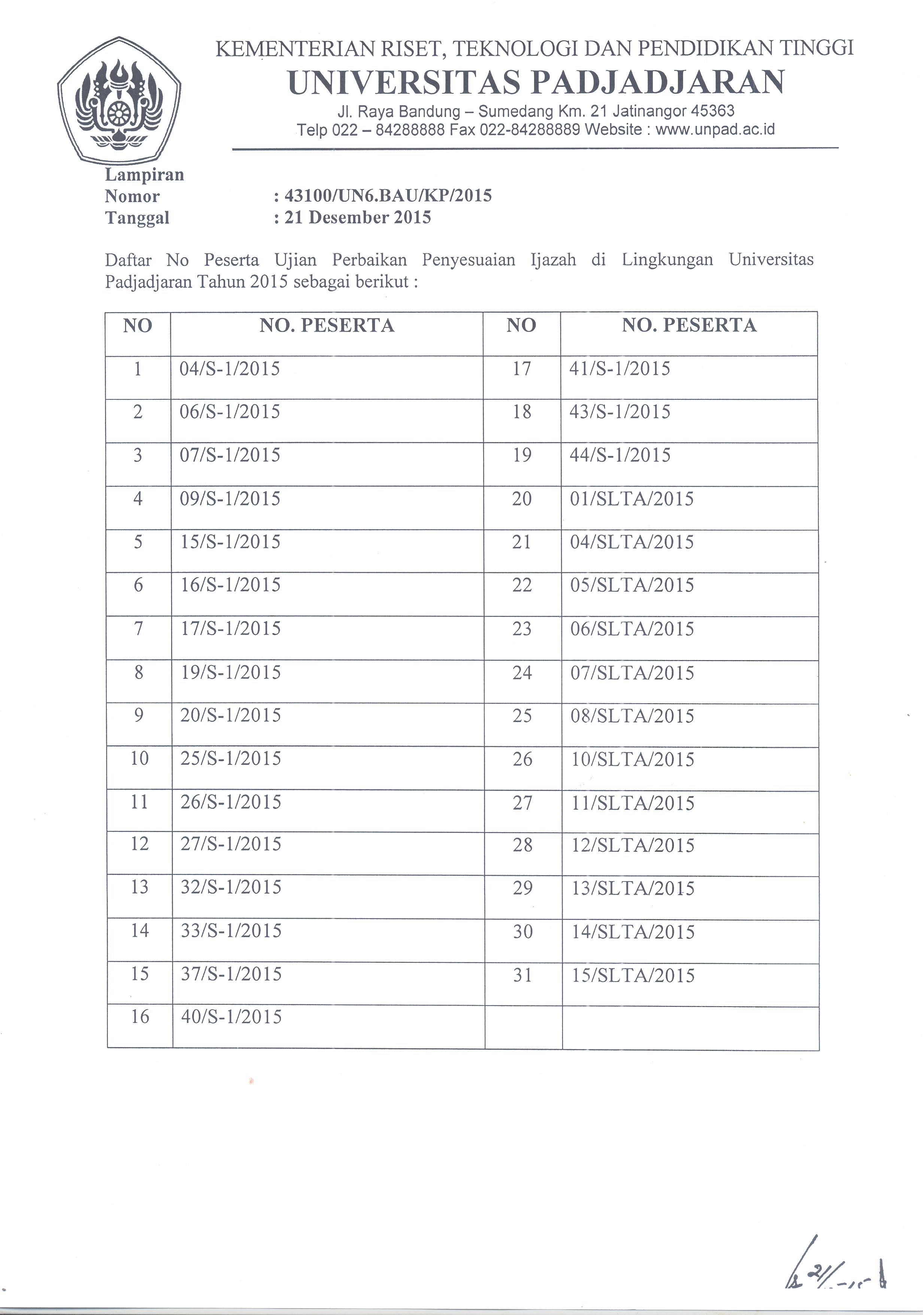 Pengumuman Jadwal Ujian Perbaikan Penyesuaian Ijazah di lingkungan Unpad Kantor Komunikasi Publik 2015-12-21 1 min read 2015-12-21 Share this: Baca 1 menit 1081 views Share this: