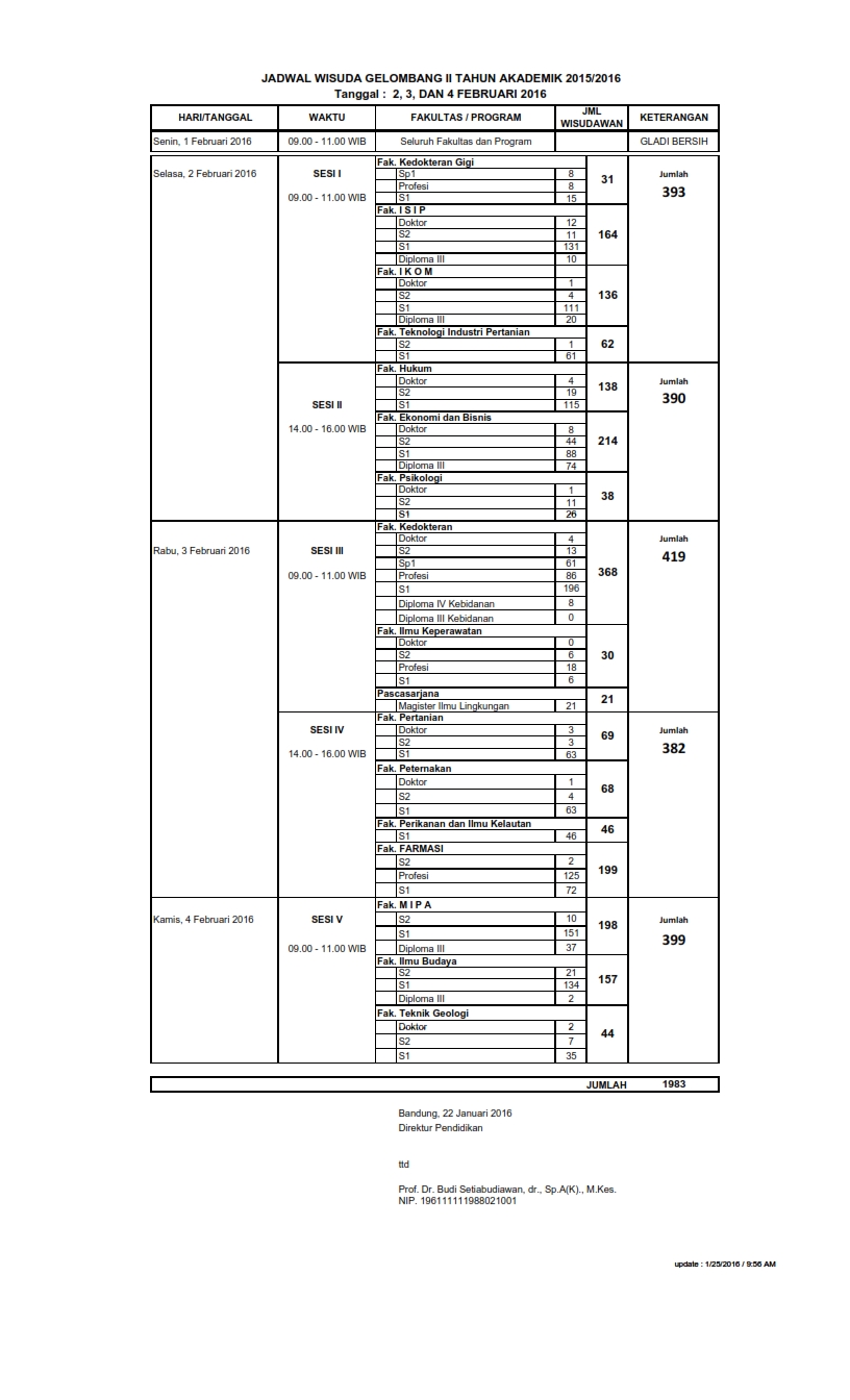 Pengumuman Jadwal Wisuda Gelombang II 2015/2016 Februari 2016 Kantor Komunikasi Publik 2016-01-23 1 min read 2016-01-23 Share this: Baca 1 menit 439 views Share this: