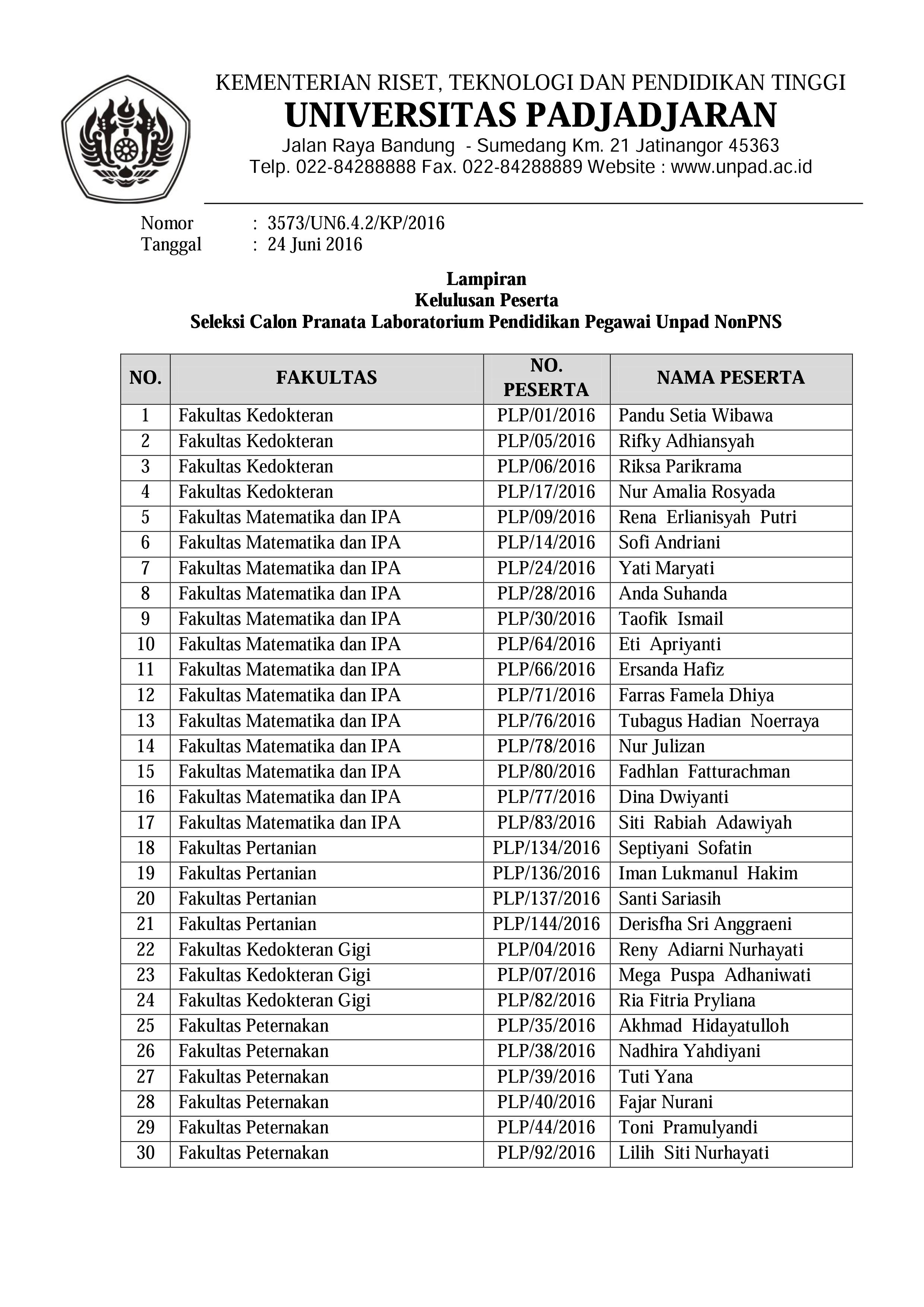Pengumuman Kelulusan Peserta Seleksi Calon Pranata Laboratorium Pendidikan Pegawai Unpad NonPNS Kantor Komunikasi Publik 2016-06-24 1 min read 2016-06-24 Share this: Baca 1 menit 810 views Share this: