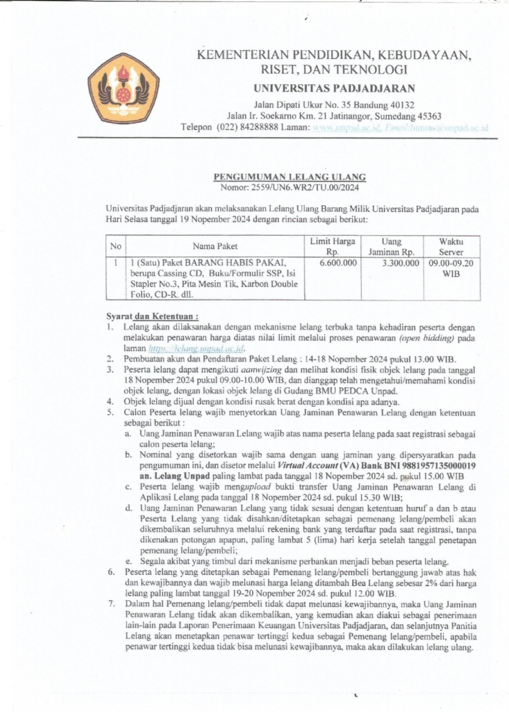 Pengumuman Lelang Ulang Satu Paket Barang Habis Pakai Erman 2024-11-14 1 min read 2024-11-14 Share this: Baca 1 menit 5272 views Share this: