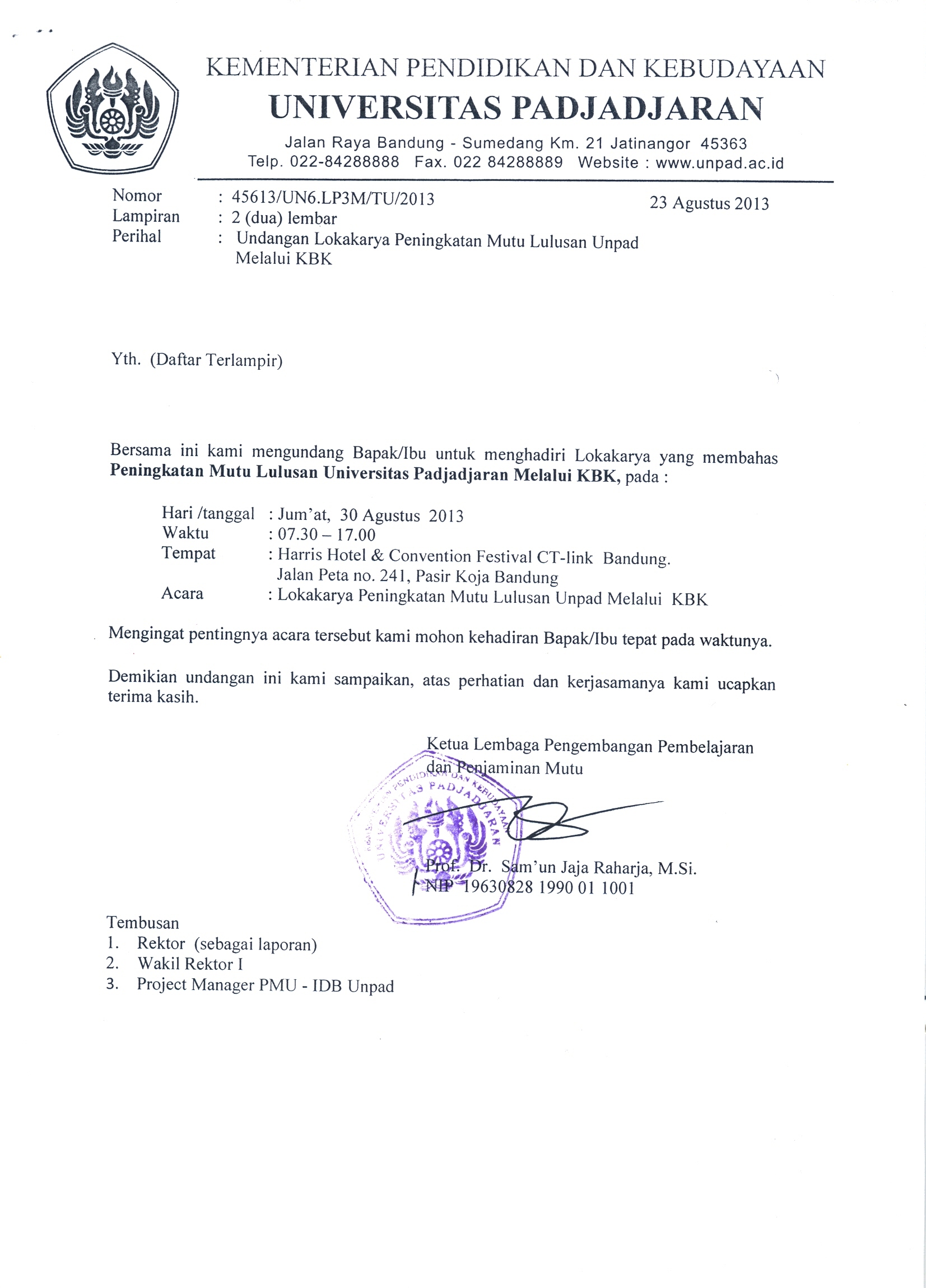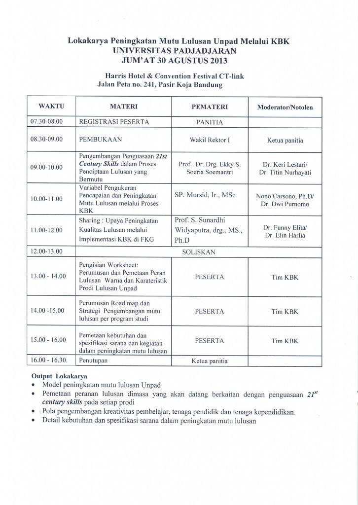 Pengumuman Lokakarya Peningkatan Mutu Lulusan Unpad Melalui KBK Kantor Komunikasi Publik 2013-08-27 1 min read 2013-08-27 Share this: Baca 1 menit 287 views Share this: