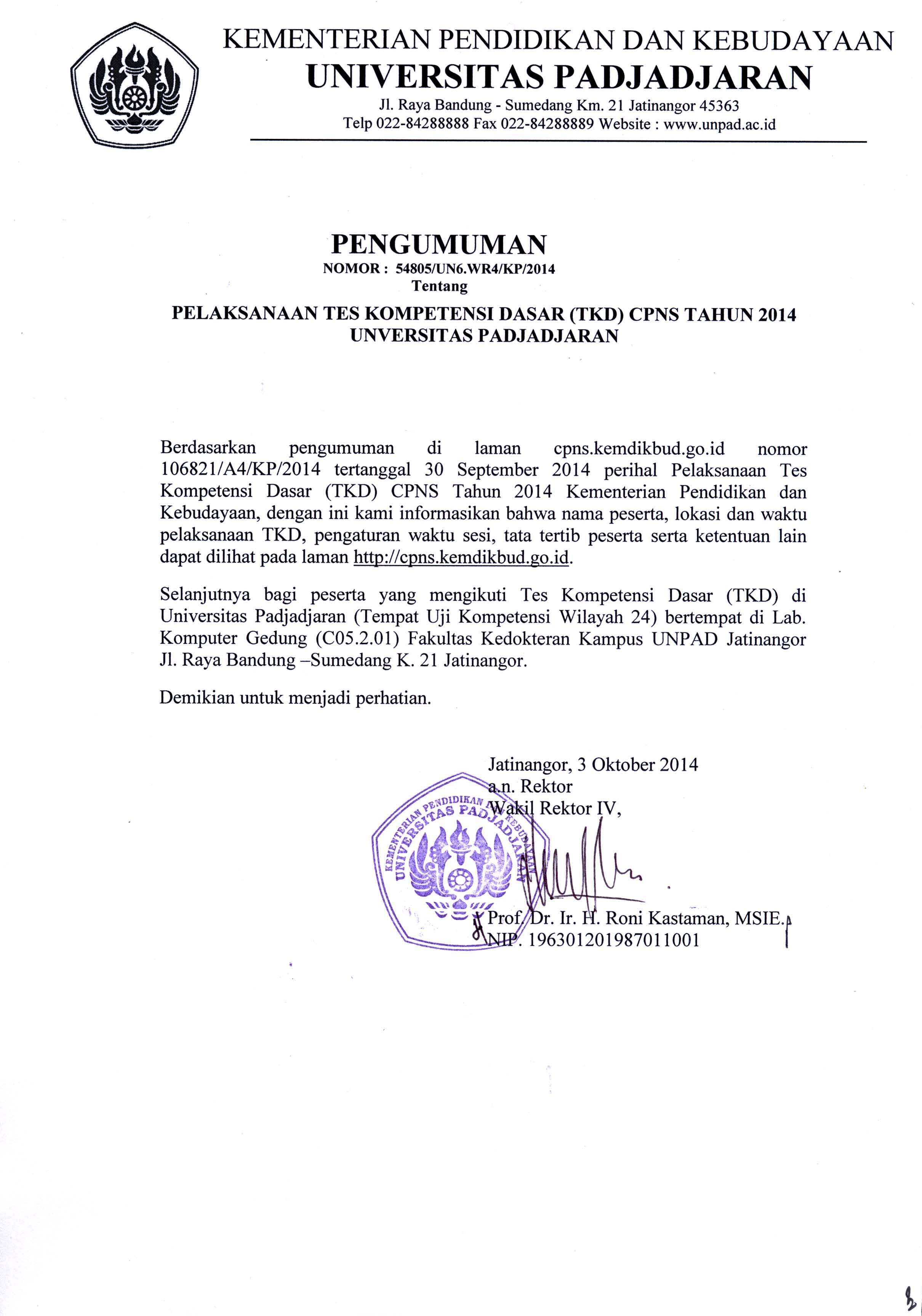 Pengumuman Pelaksanaan Tes Kompetensi Dasar CPNS Unpad 2014 Kantor Komunikasi Publik 2014-10-03 1 min read 2014-10-03 Share this: Baca 1 menit 215 views Share this: