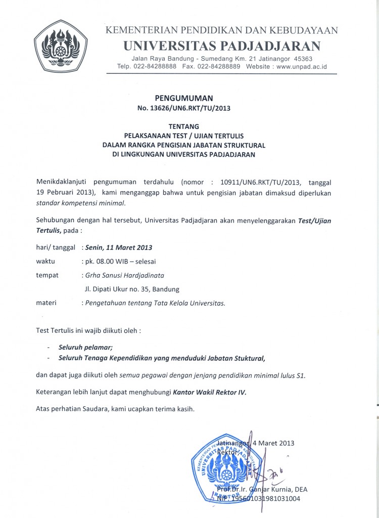Pengumuman Pelaksanaan Tes Ujian Tertulis Pengisian Jabatan Struktural di Unpad Kantor Komunikasi Publik 2013-03-04 1 min read 2013-03-04 Share this: Baca 1 menit 729 views Share this: