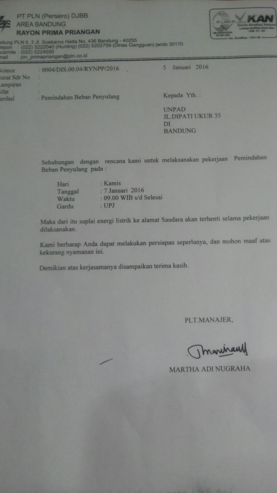 Pengumuman Pemadaman Listrik 7 Januari 2016 Kampus Unpad Jln. Dipati Ukur Kantor Komunikasi Publik 2016-01-07 1 min read 2016-01-07 Share this: Baca 1 menit 221 views Share this: