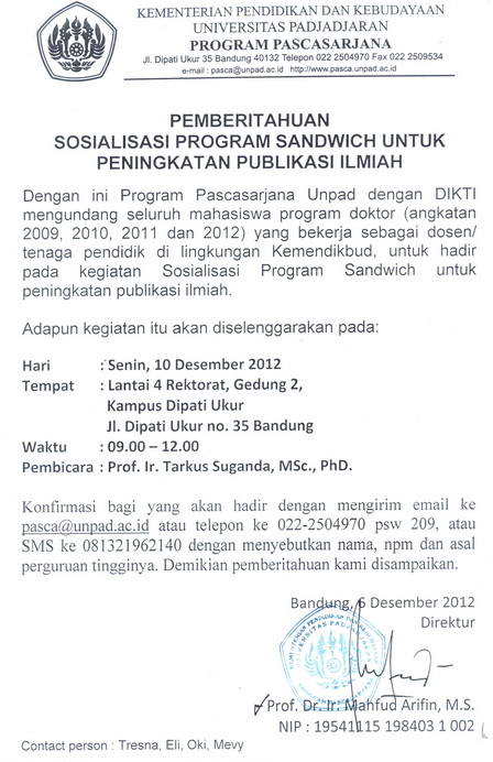 Pengumuman Pemberitahuan Sosialisasi Program Sandwich Untuk Peningkatan Publikasi Ilmiah marlia 2012-12-07 1 min read 2012-12-07 Share this: Baca 1 menit 664 views Share this: