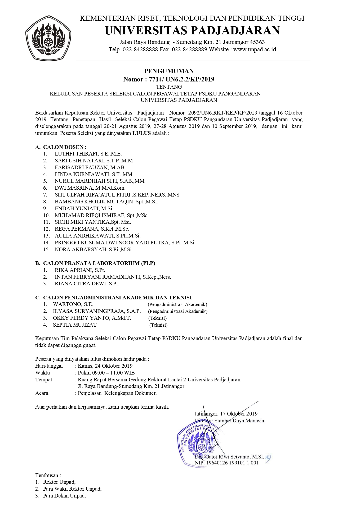 Pengumuman Pengumuman Kelulusan Peserta Seleksi Calon Pegawai Tetap PSDKU Unpad Pangandaran Kantor Komunikasi Publik 2019-10-18 1 min read 2019-10-18 Share this: Baca 1 menit 893 views Share this: